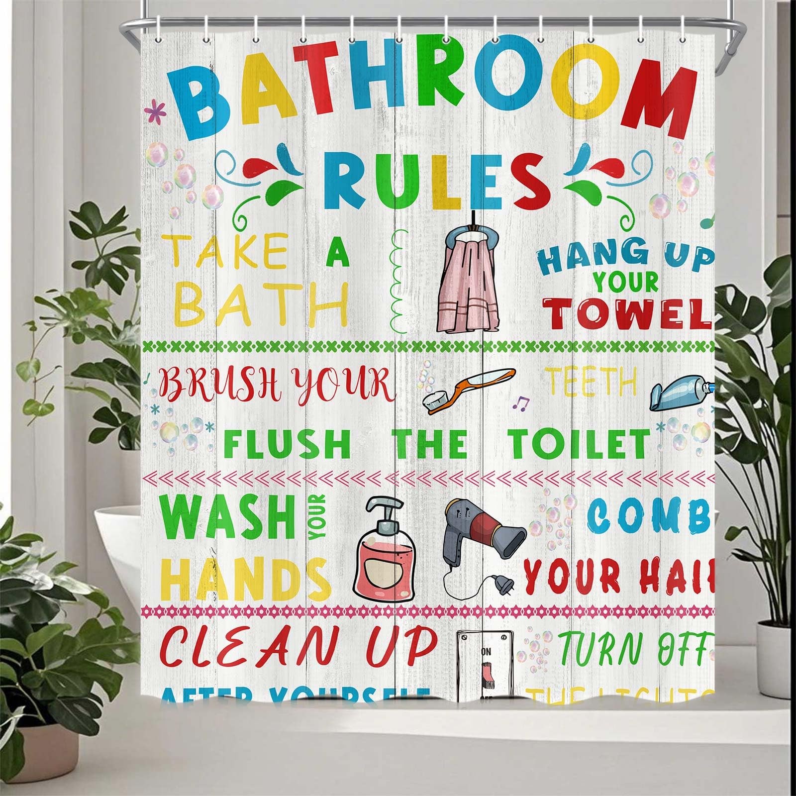 Kids Shower Curtain Bathroom Rules Shower Curtain for Teen Boy Girl, Funny Ba...