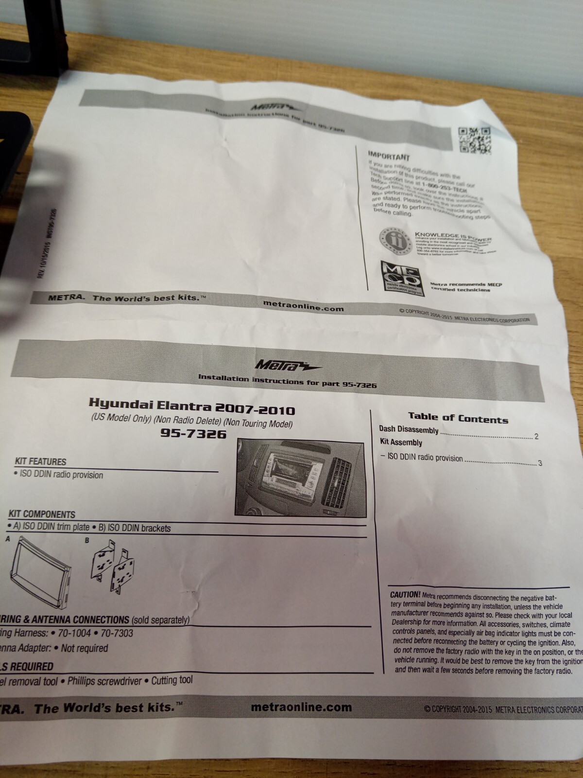 Metra 95-7326 Double DIN Installation Kit for Hyundai Elantra 2007-2010 US Model
