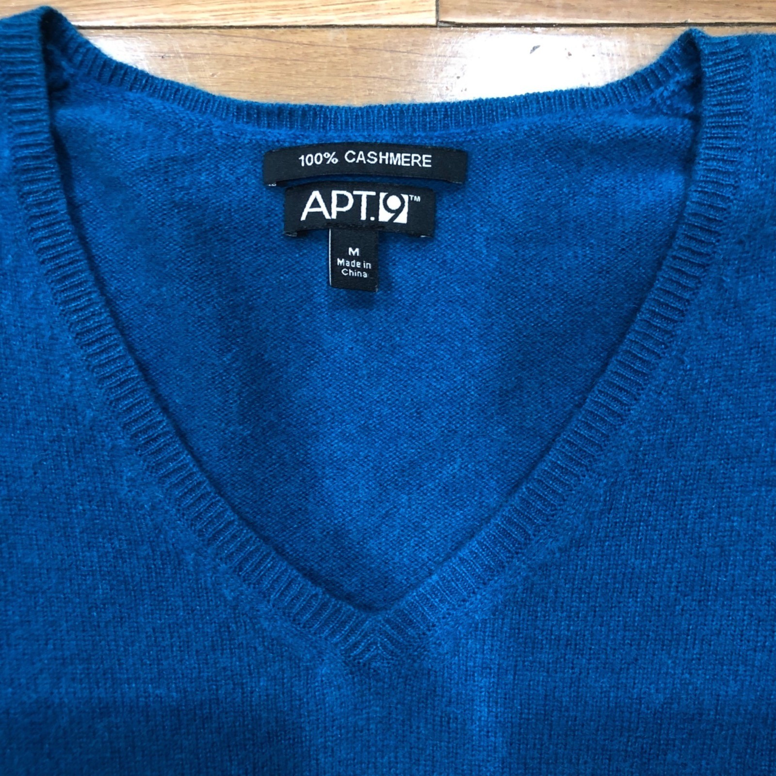 как выглядит Apt9 100 Cashmere V-Neck Teal Sweater Size M фото