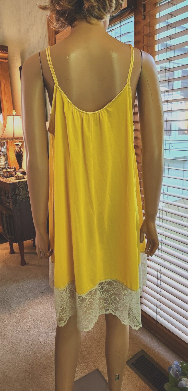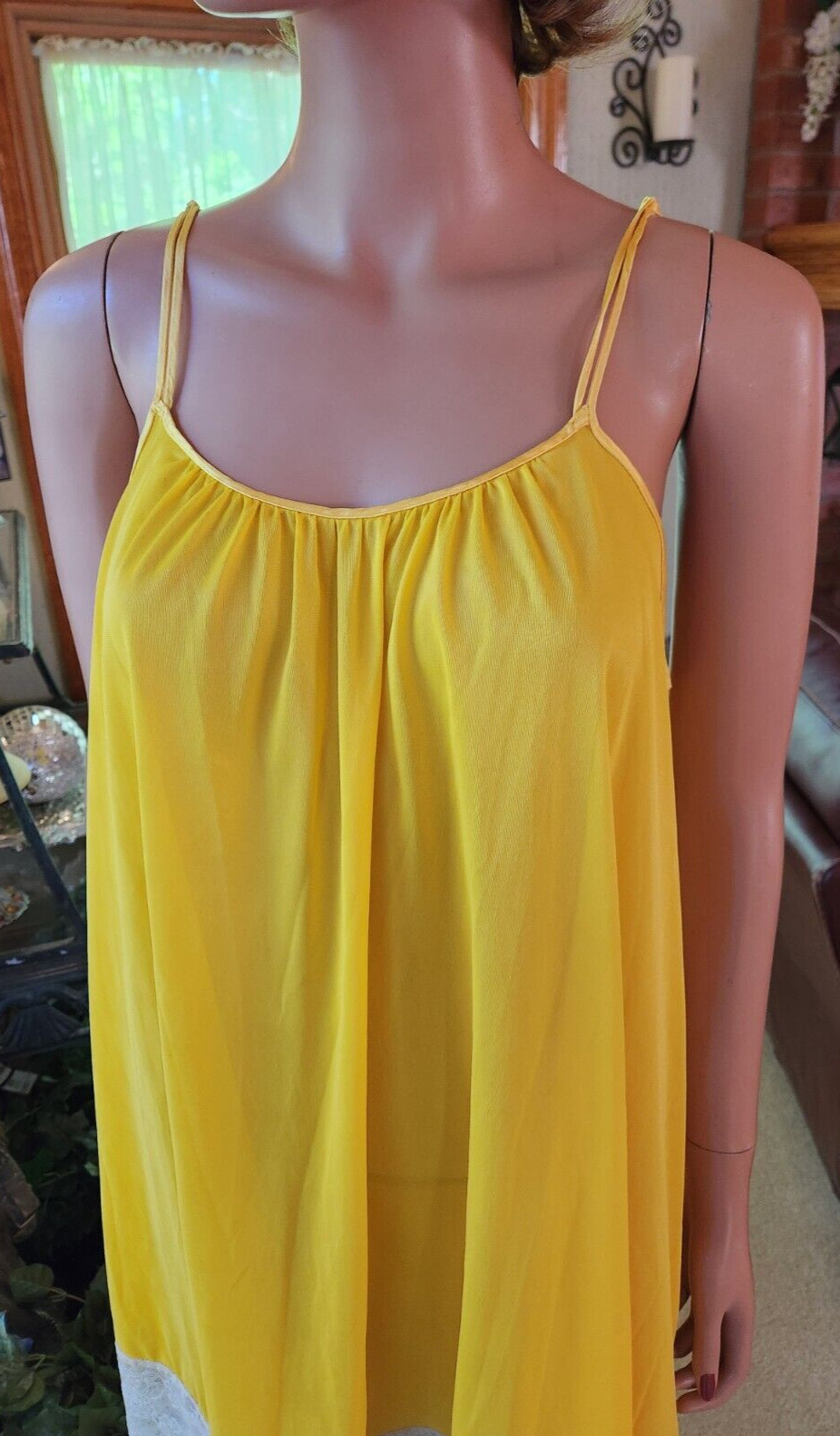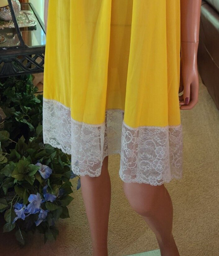 как выглядит Vtg 60s Rare Van Raalte Mustard Yellow Nylon Babydoll Lace Hem Nightgown фото