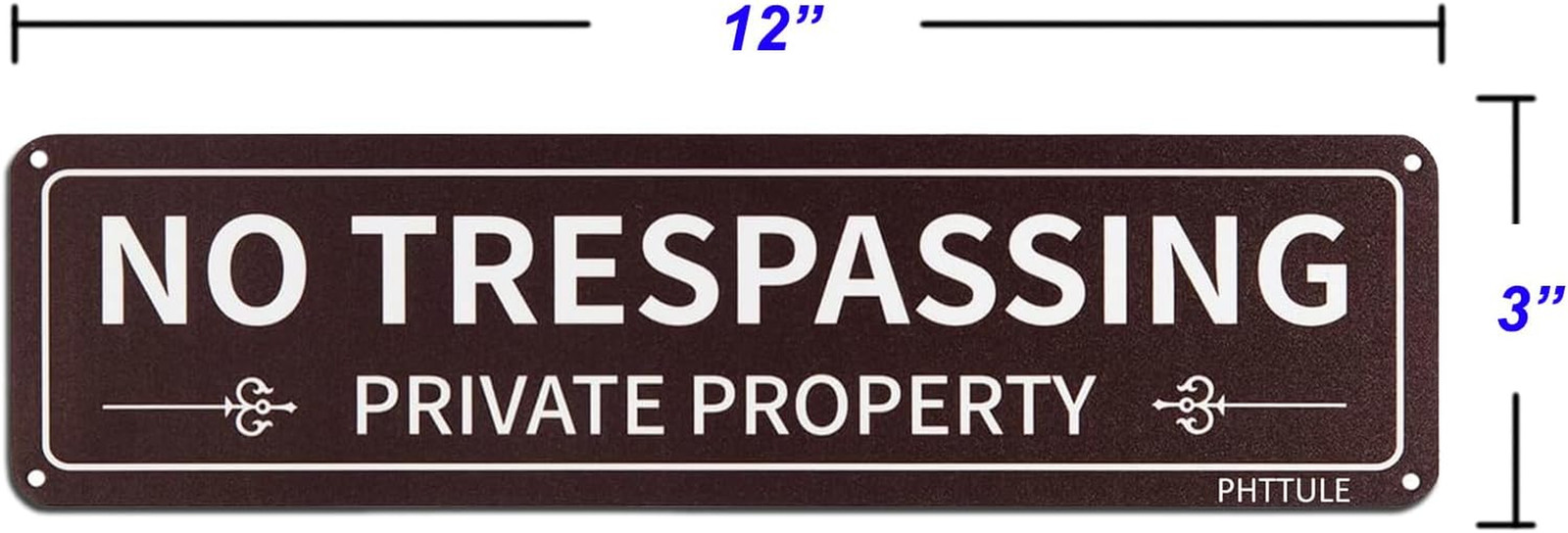Private Property No Trespassing Sign 2 Pack, Metal No Trespass Sign, 12x3 Inch U