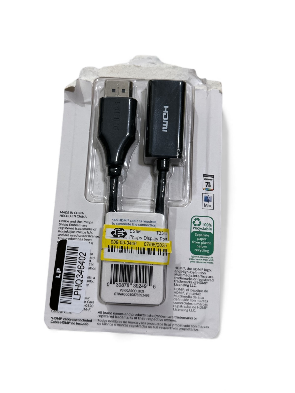 Philips Display Port to HDMI Adapter - Black - Male-Female, 6 Cable Adapters