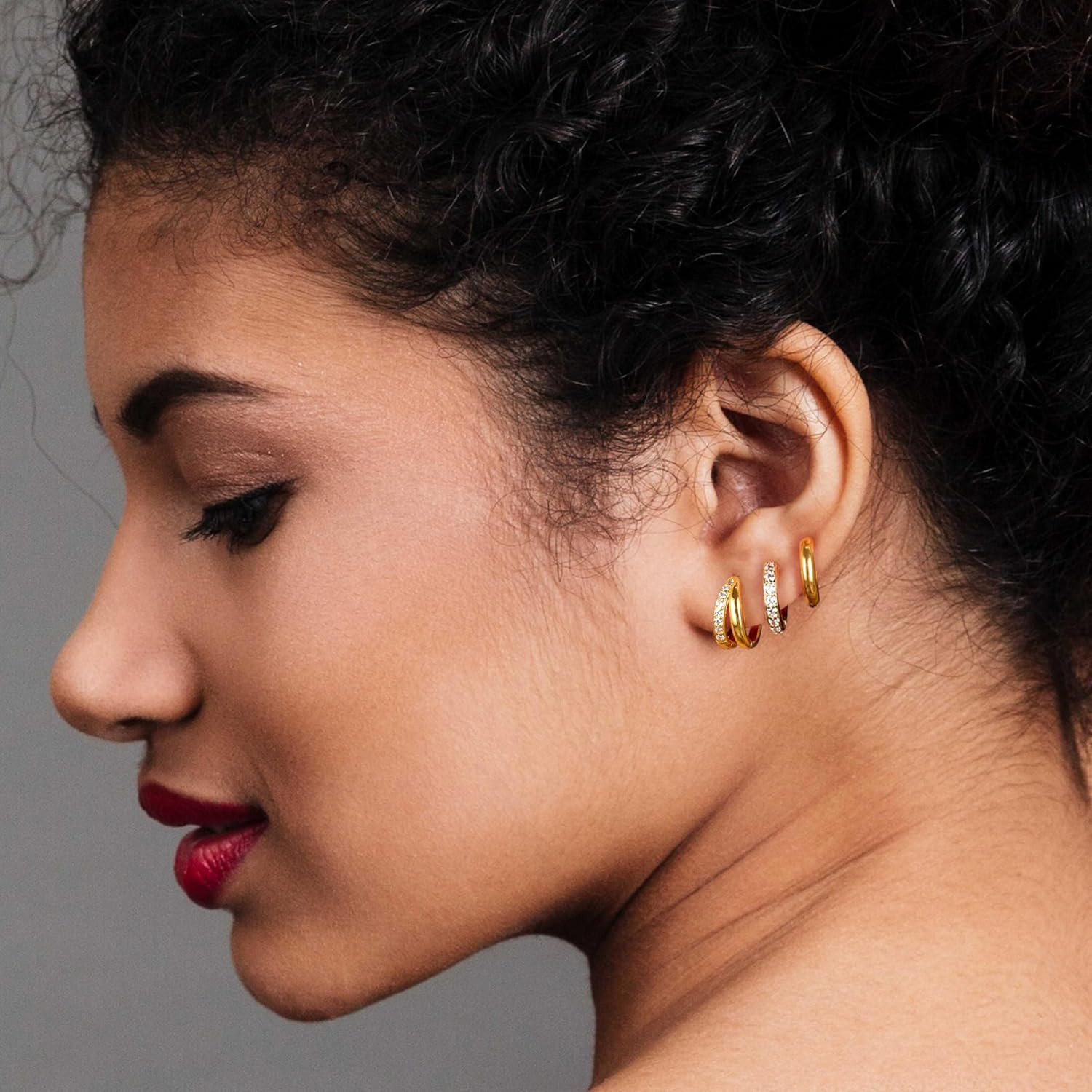 как выглядит 3 Pairs Small Gold Huggie Hoop Earrings Set for Women,14K Gold Plated Hypoallerg фото