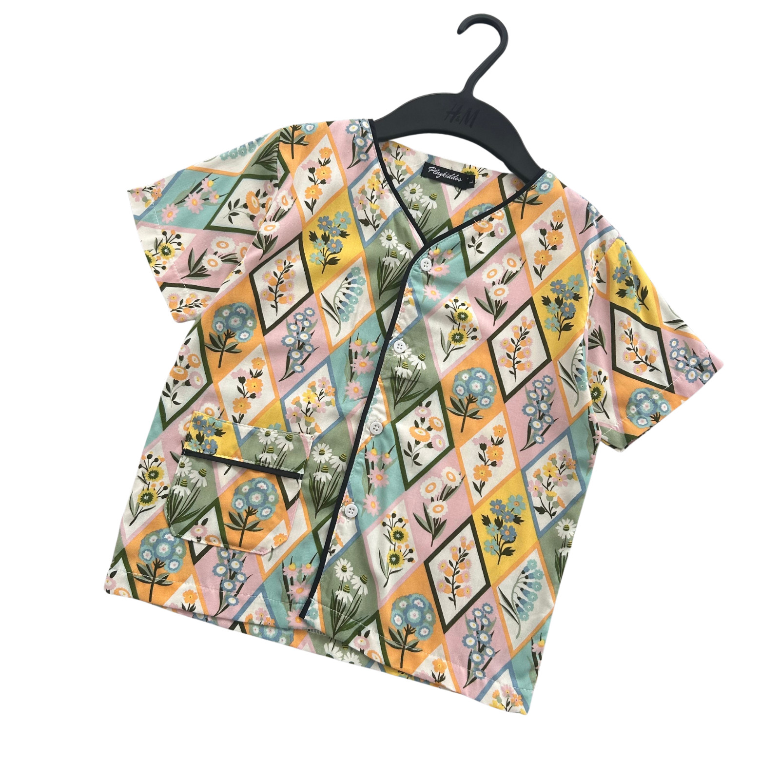 Kids Vintage Floral Pajama Set 1-11Y Boys Girls Cotton Rayon Sleepwear PJs