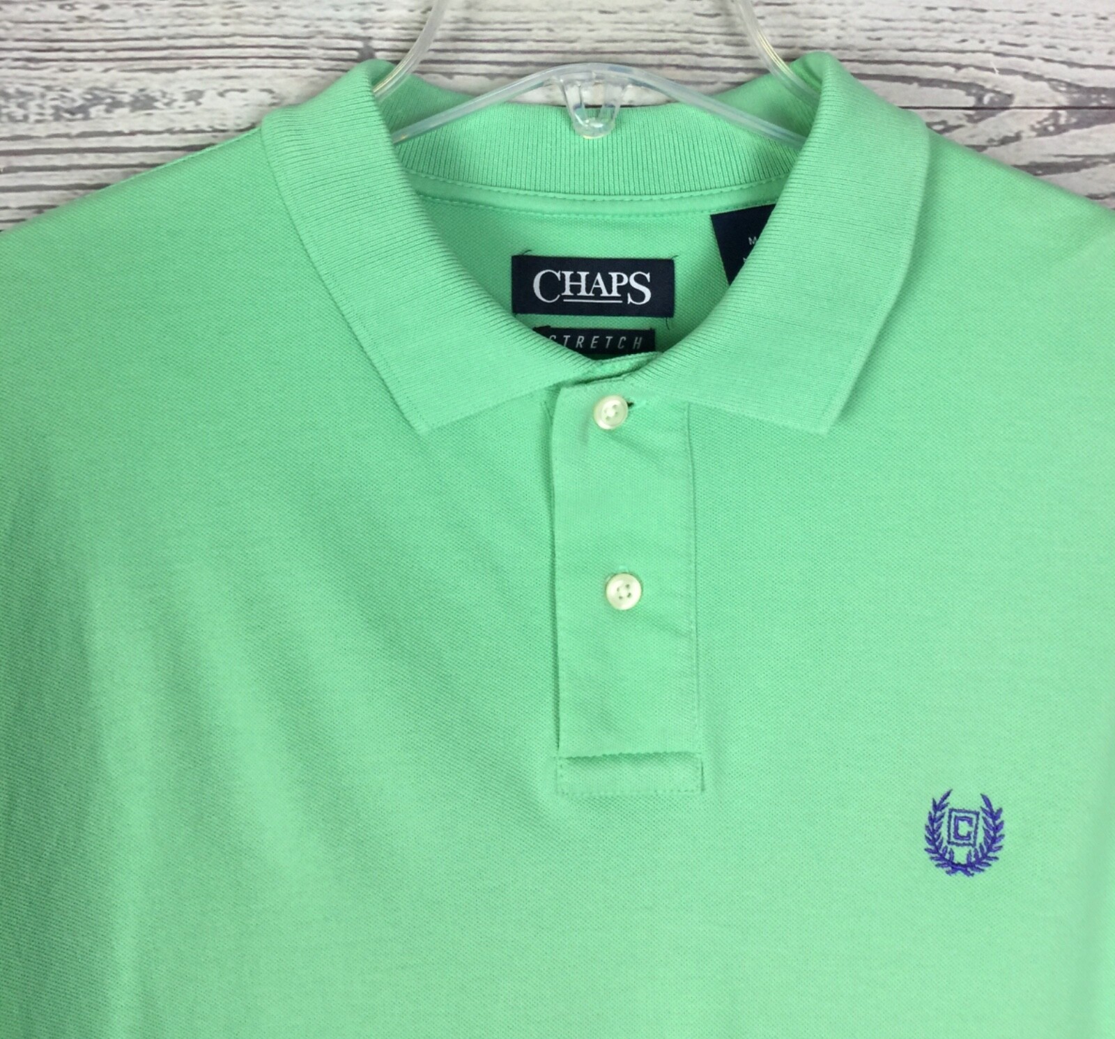 как выглядит Chaps Stretch Mens Green Short Sleeve 2-Button Logo Polo Shirt Size M фото