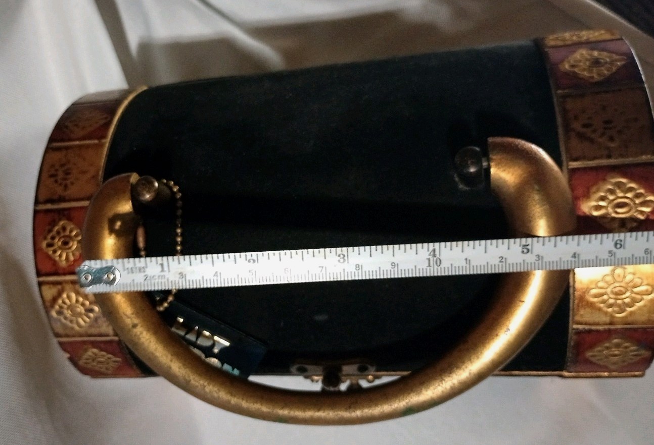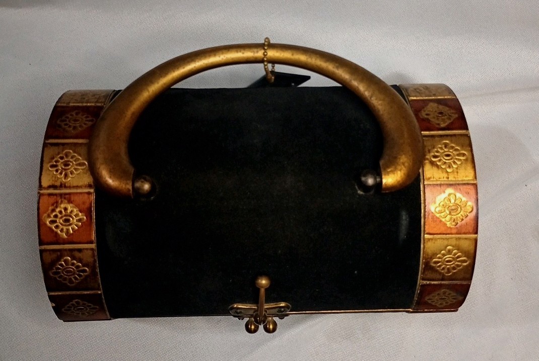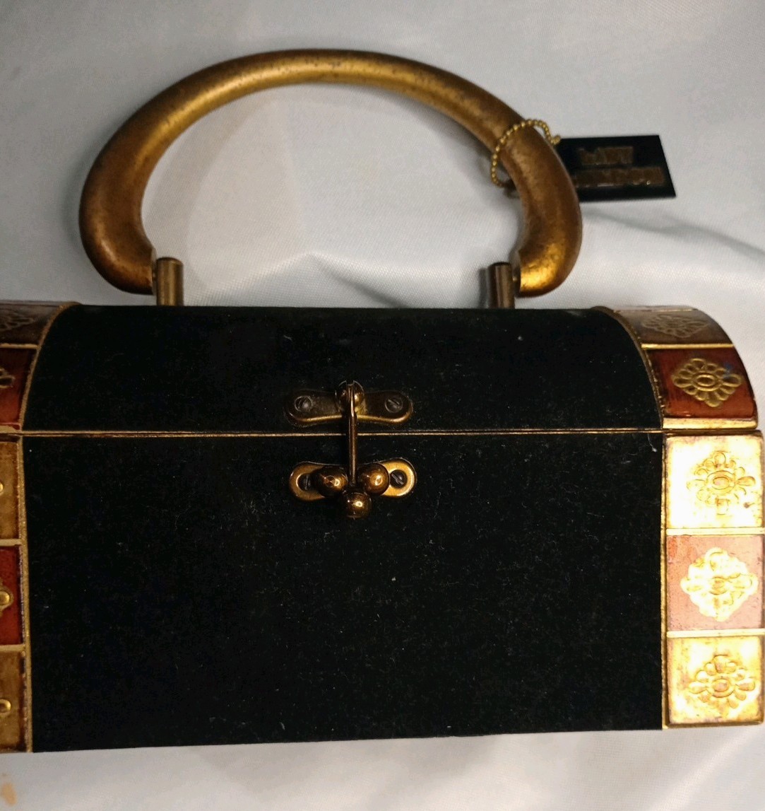 Vtg 9 8W 4 1/2T 5L 1969yr Lady Royal London Wood Purse Black Velvet W/Tags