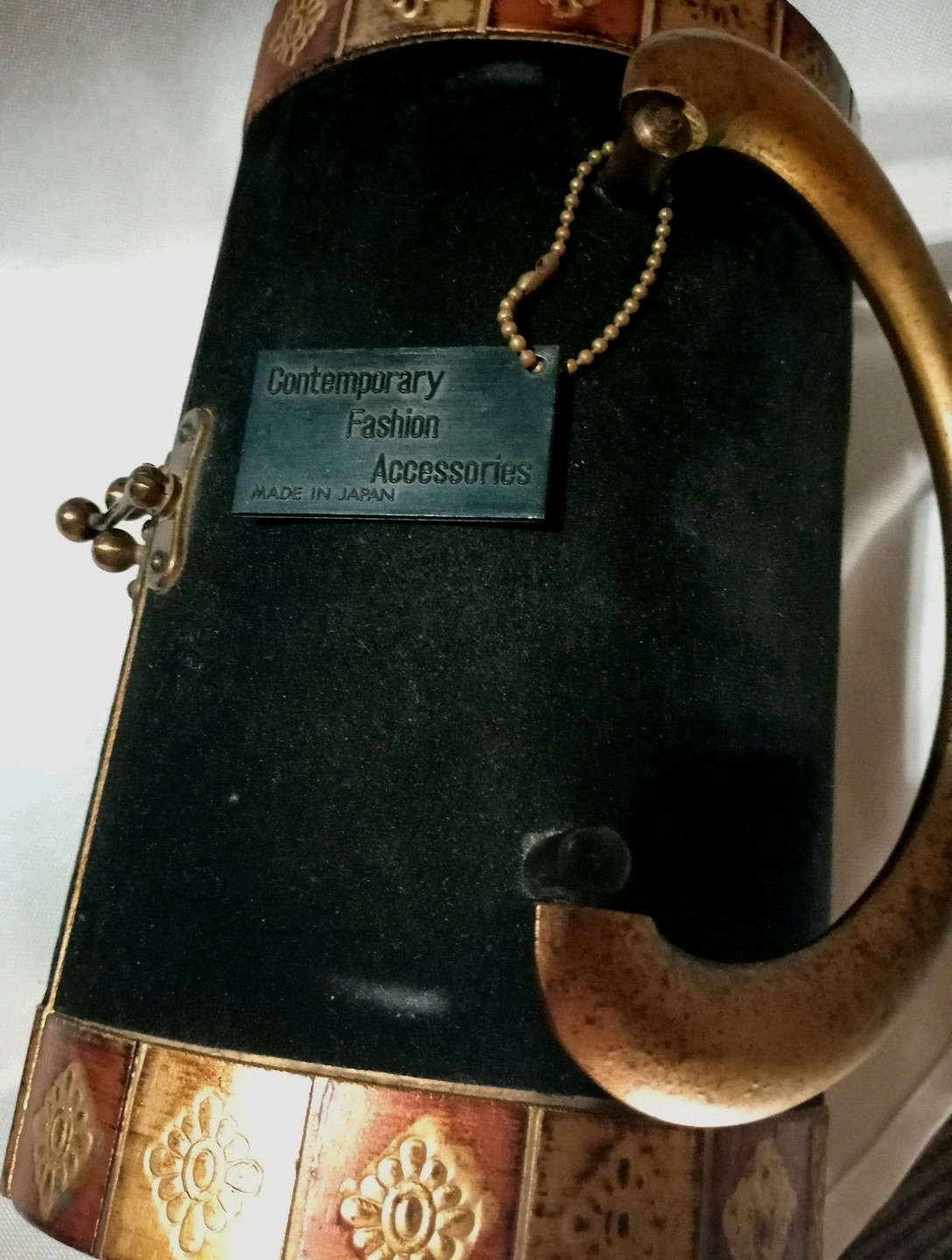 как выглядит Vtg 9" 8"W 4 1/2"T 5"L 1969yr Lady Royal London Wood Purse Black Velvet W/Tags фото