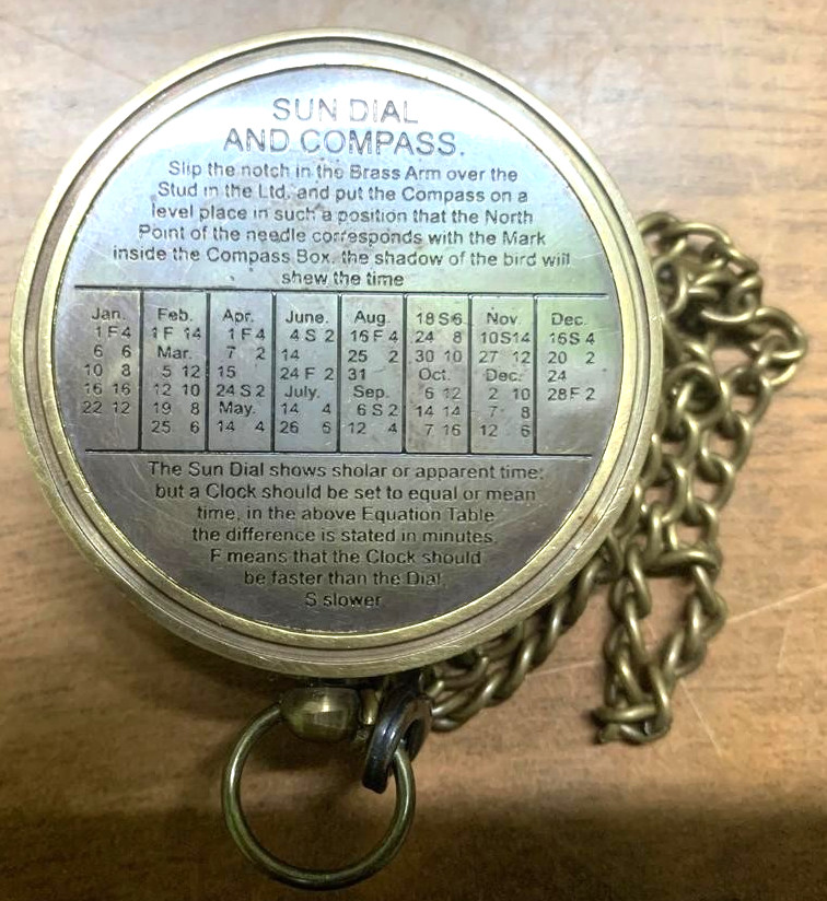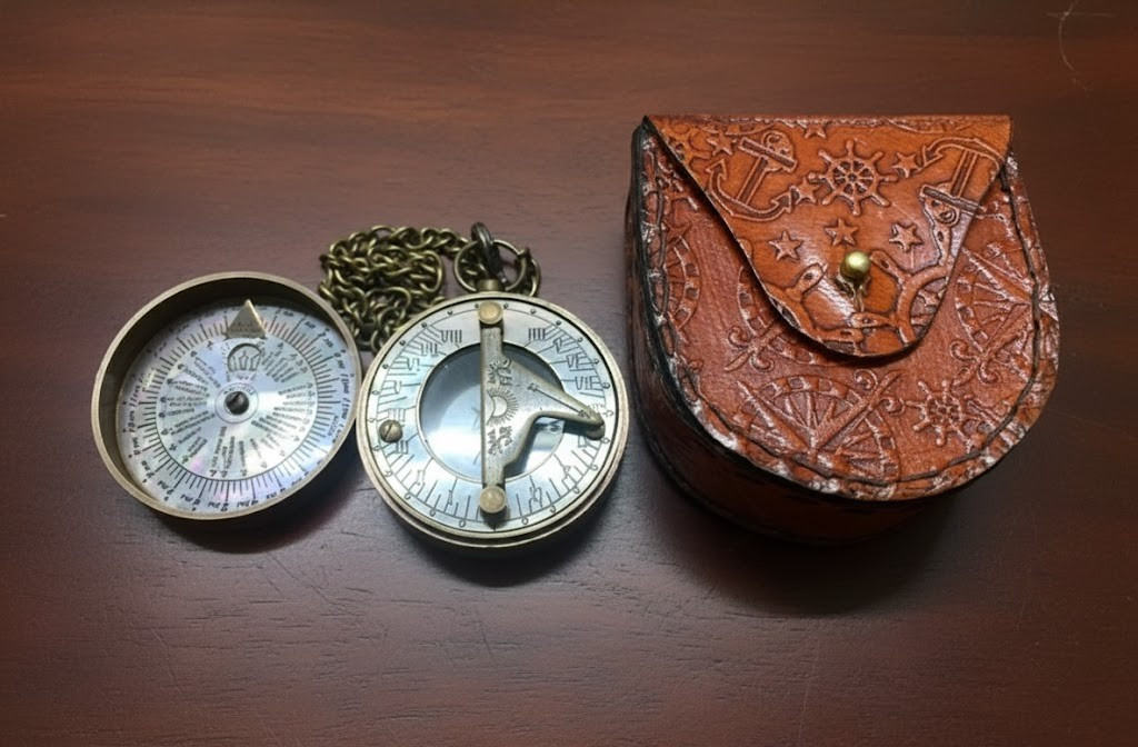 • Vintage Style Brass Sundial Pocket Compass 2 Inch with Chain and Leather Case