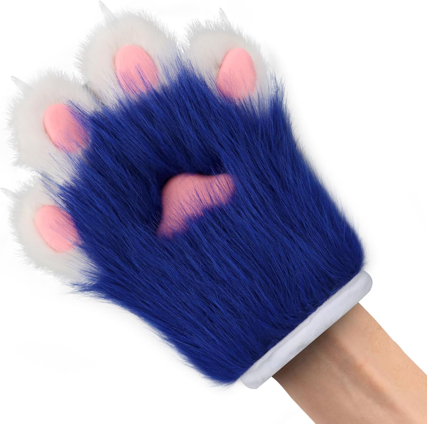 Faux Fur Plush Furry Cat Claw Gloves Fursuit Animal Fox Paws Mittens Halloween C