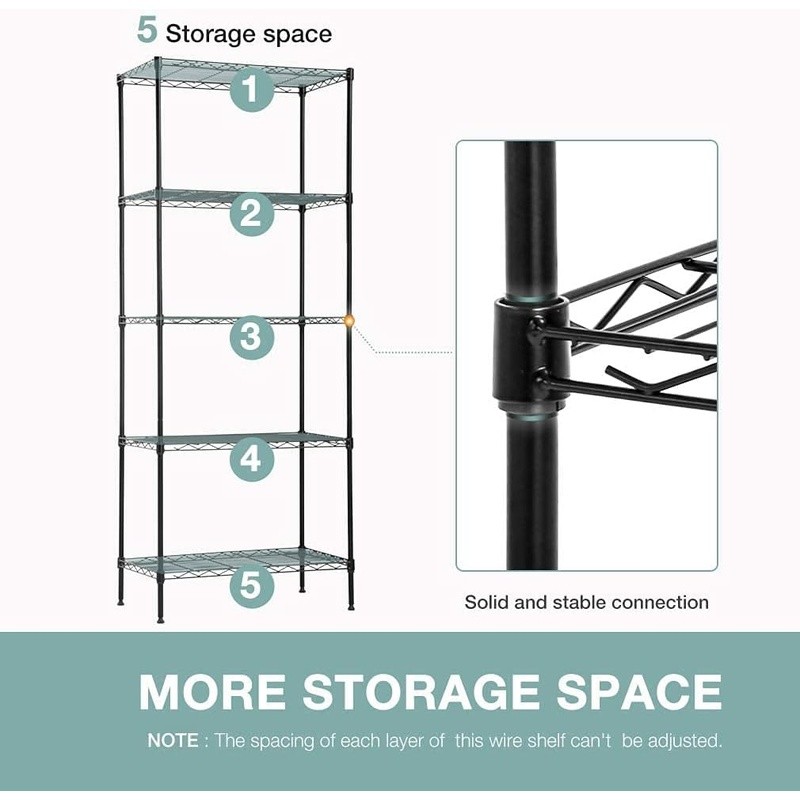 5-Tier Adjustable Metal Shelving Unit Heavy Duty Storage Rack Easy Assemble New