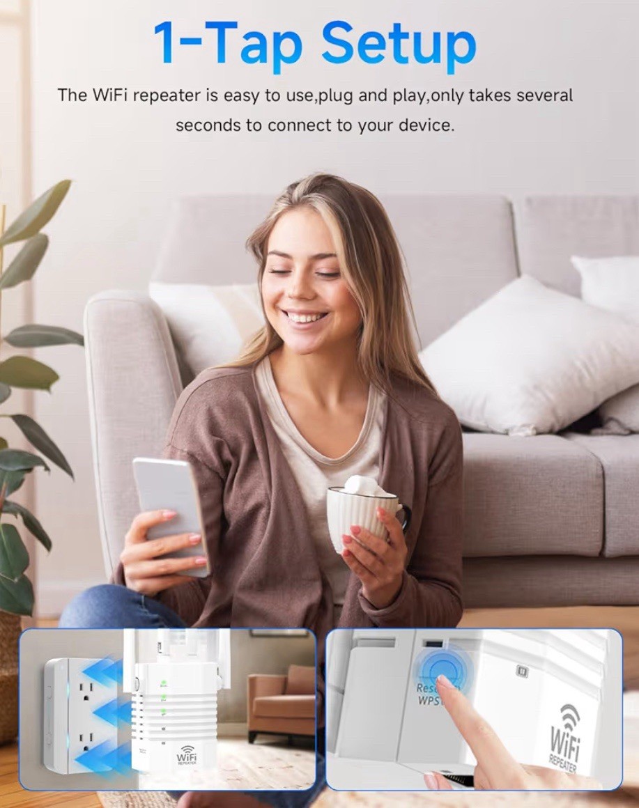 Dual Band WiFi Extender 1200Mbps WiFi Range Booster, 105-Device Support