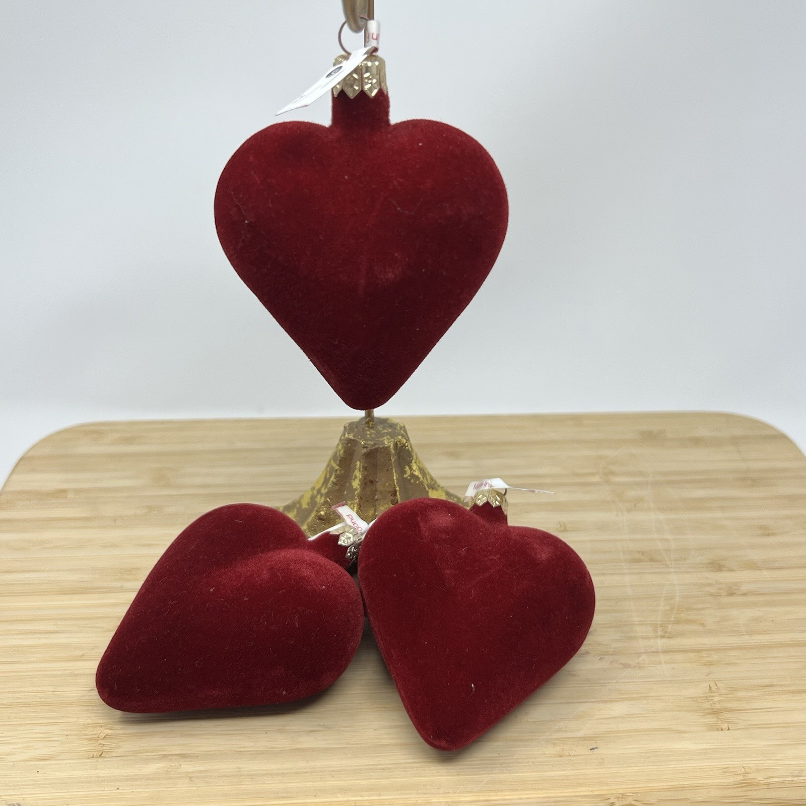 • Heart Ornament Made In Poland Red Velvet Valentines Day Decor Gold Top Set Of 3