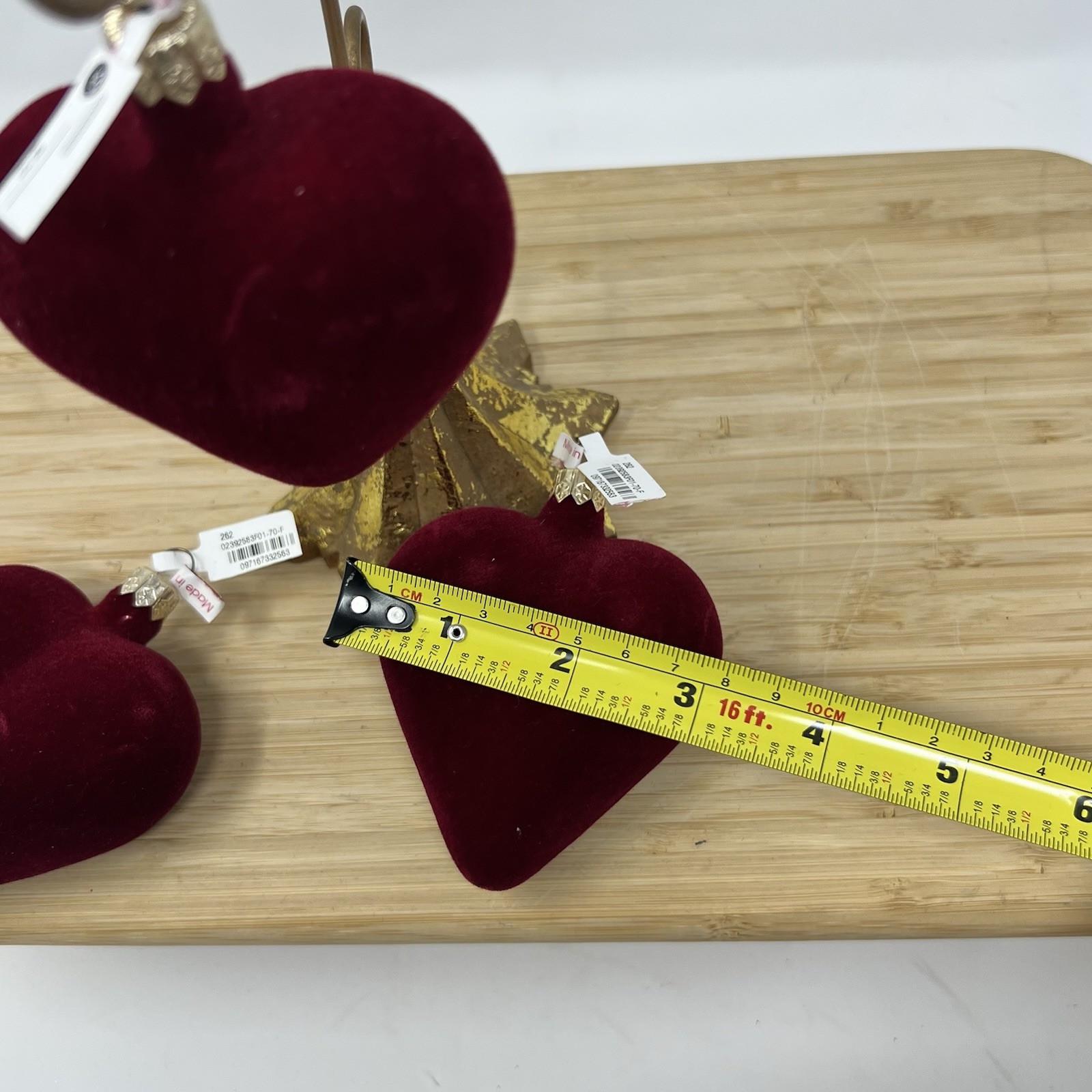 как выглядит Heart Ornament Made In Poland Red Velvet Valentines Day Decor Gold Top Set Of 3 фото
