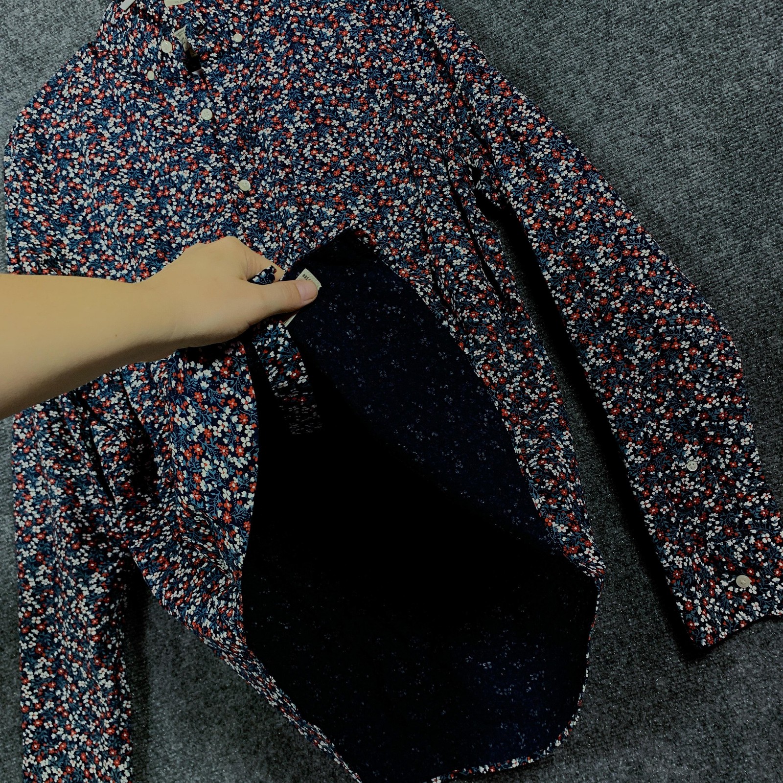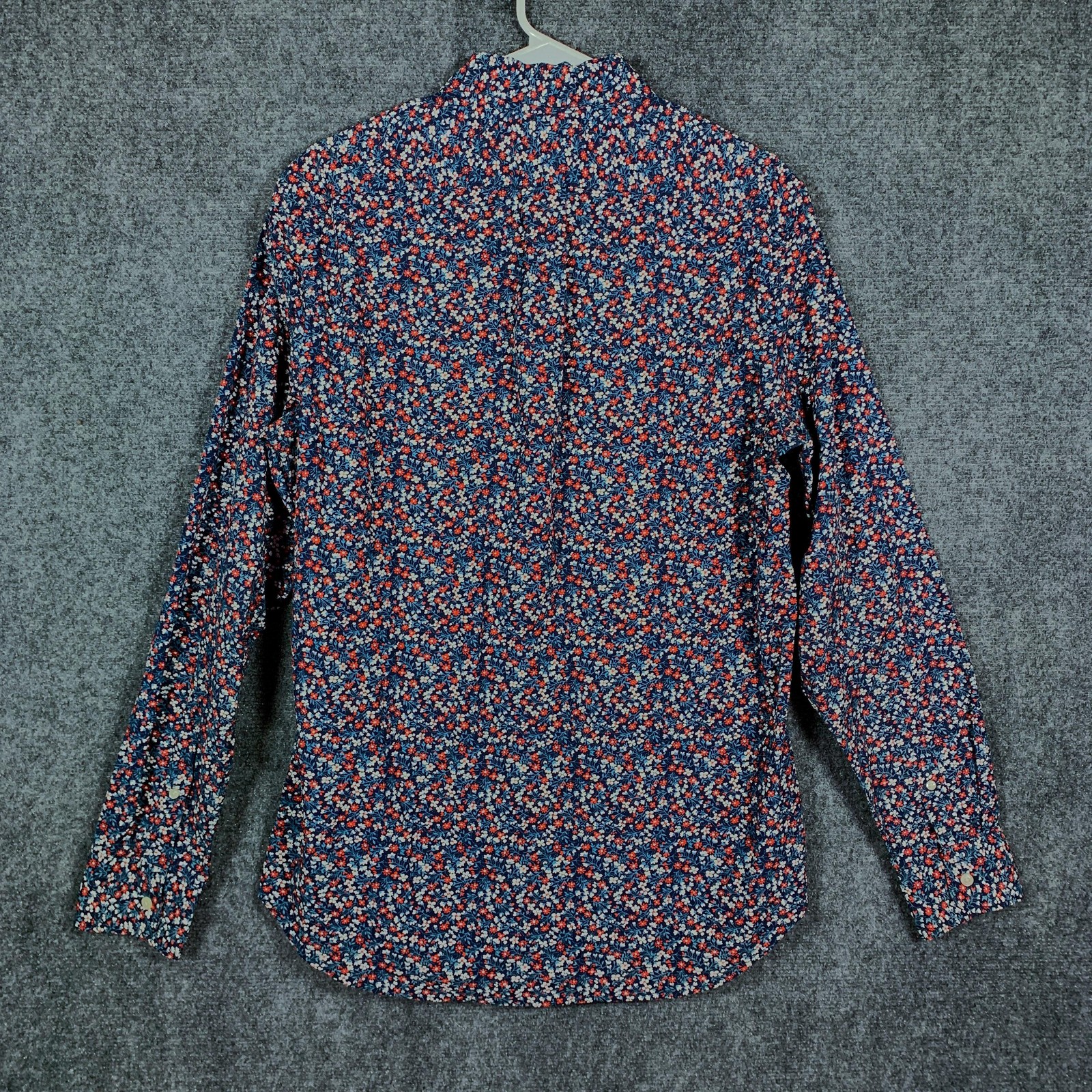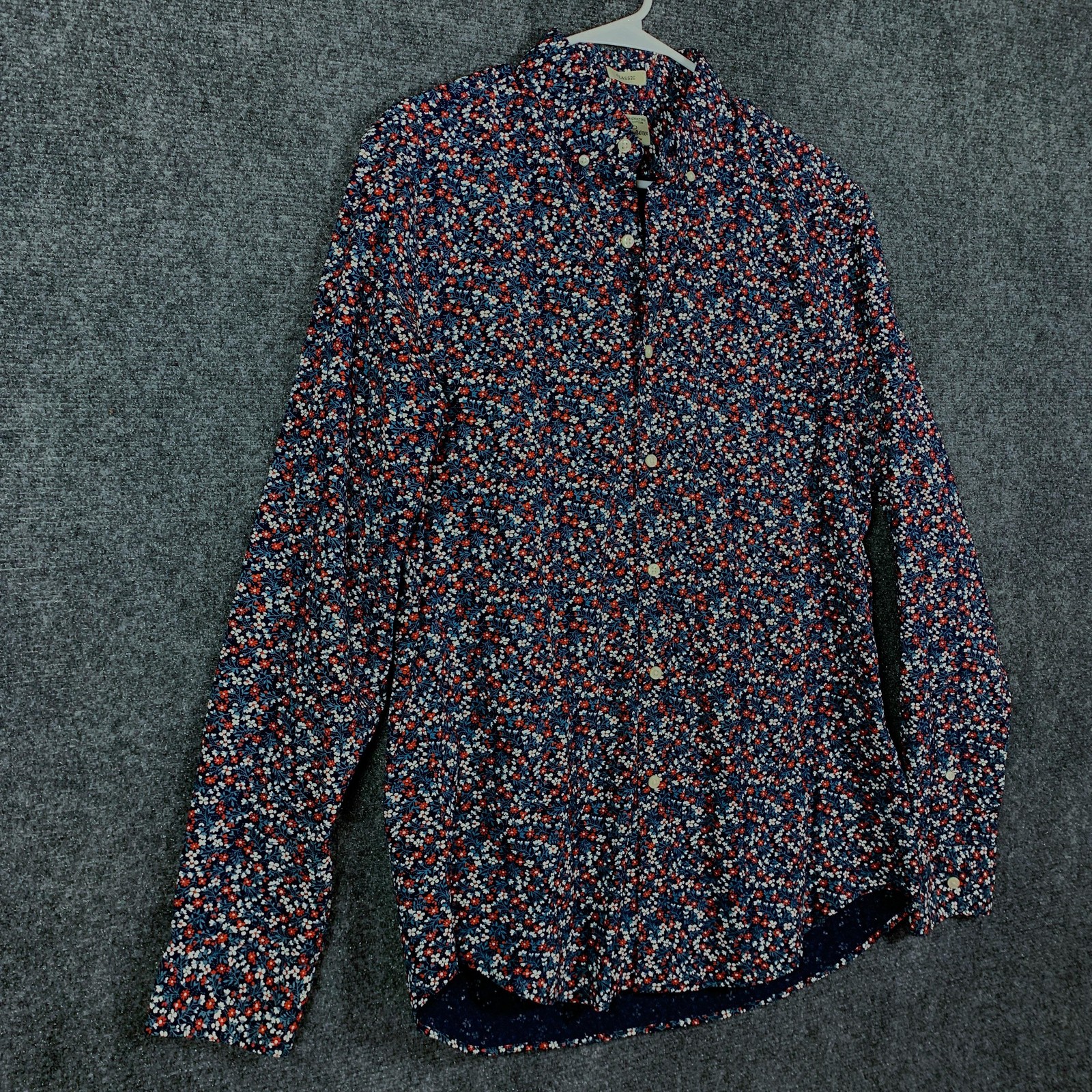 как выглядит J Crew Secret Wash Shirt Mens Medium Navy Floral Print Stretch Organic Cotton фото