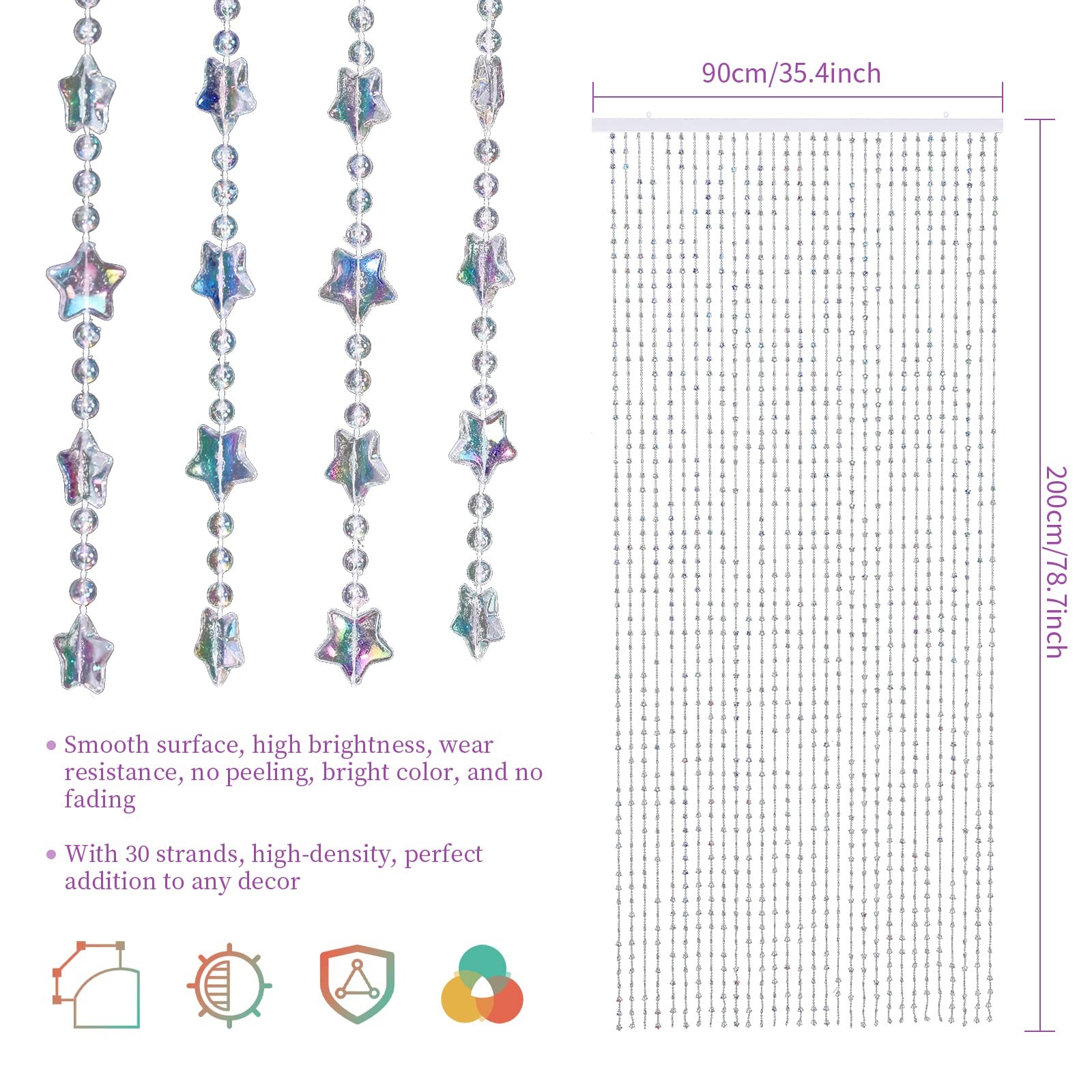 30 Strands Beaded Curtains Doorways Iridescent Crystal Door Beads Curtains Hi...