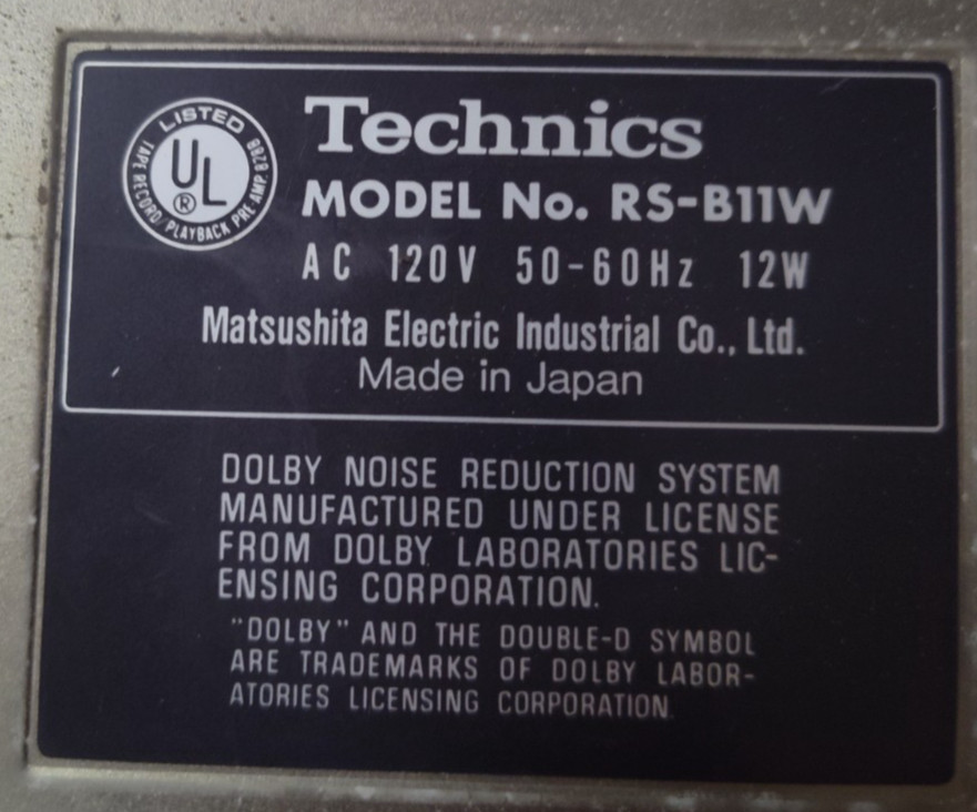 Technics RS-B11W Stereo Dual Cassette Deck Player Vintage Tested Powers On