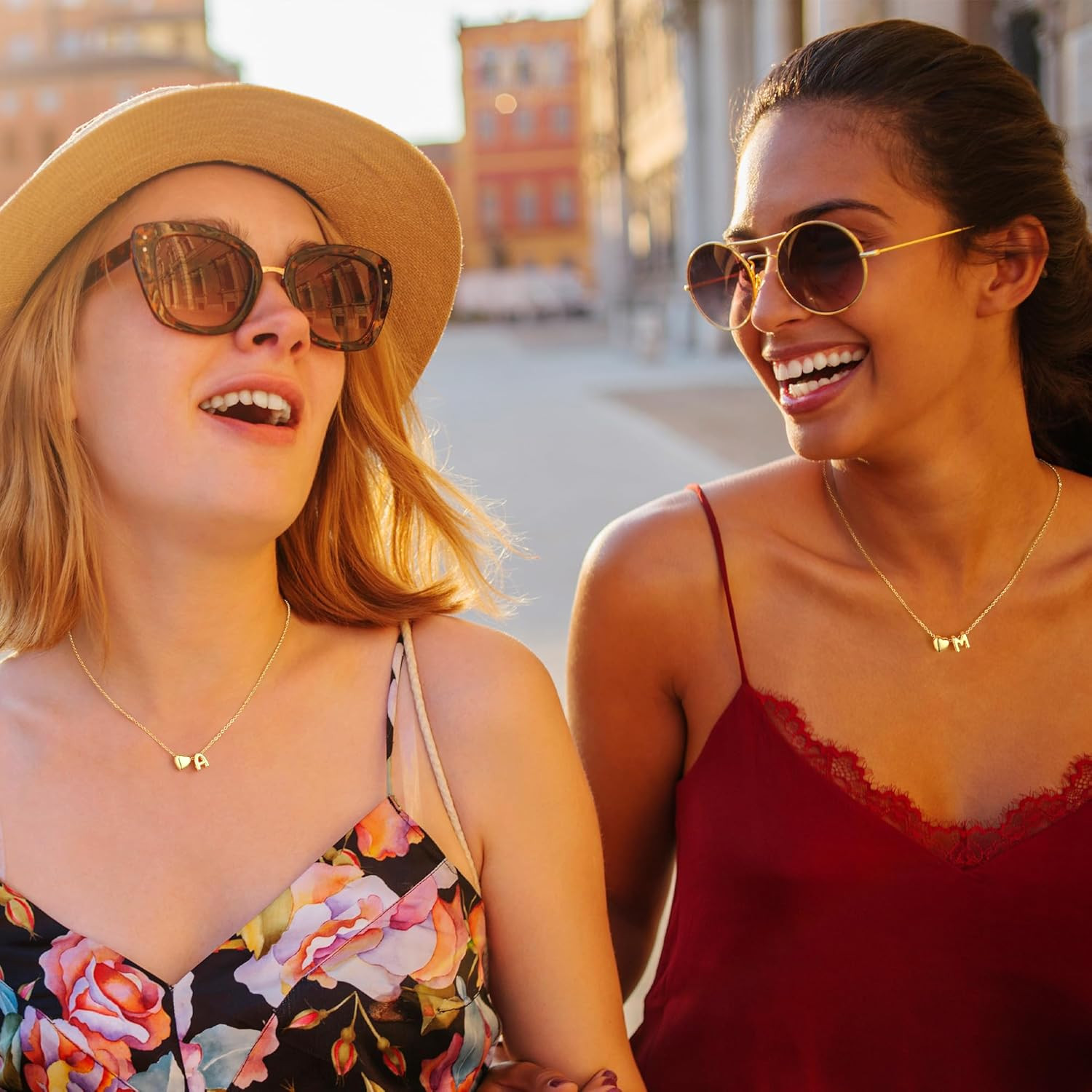 Christmas Gifts for Women Girls - 14K Gold Plated Heart Initial Necklaces for Wo