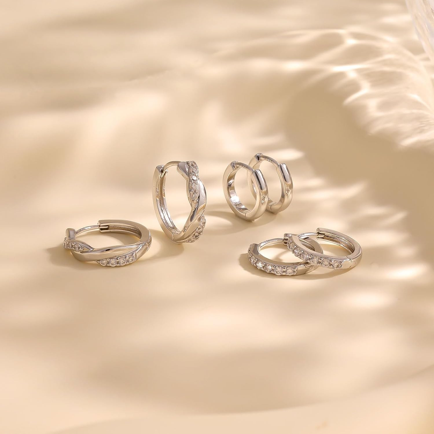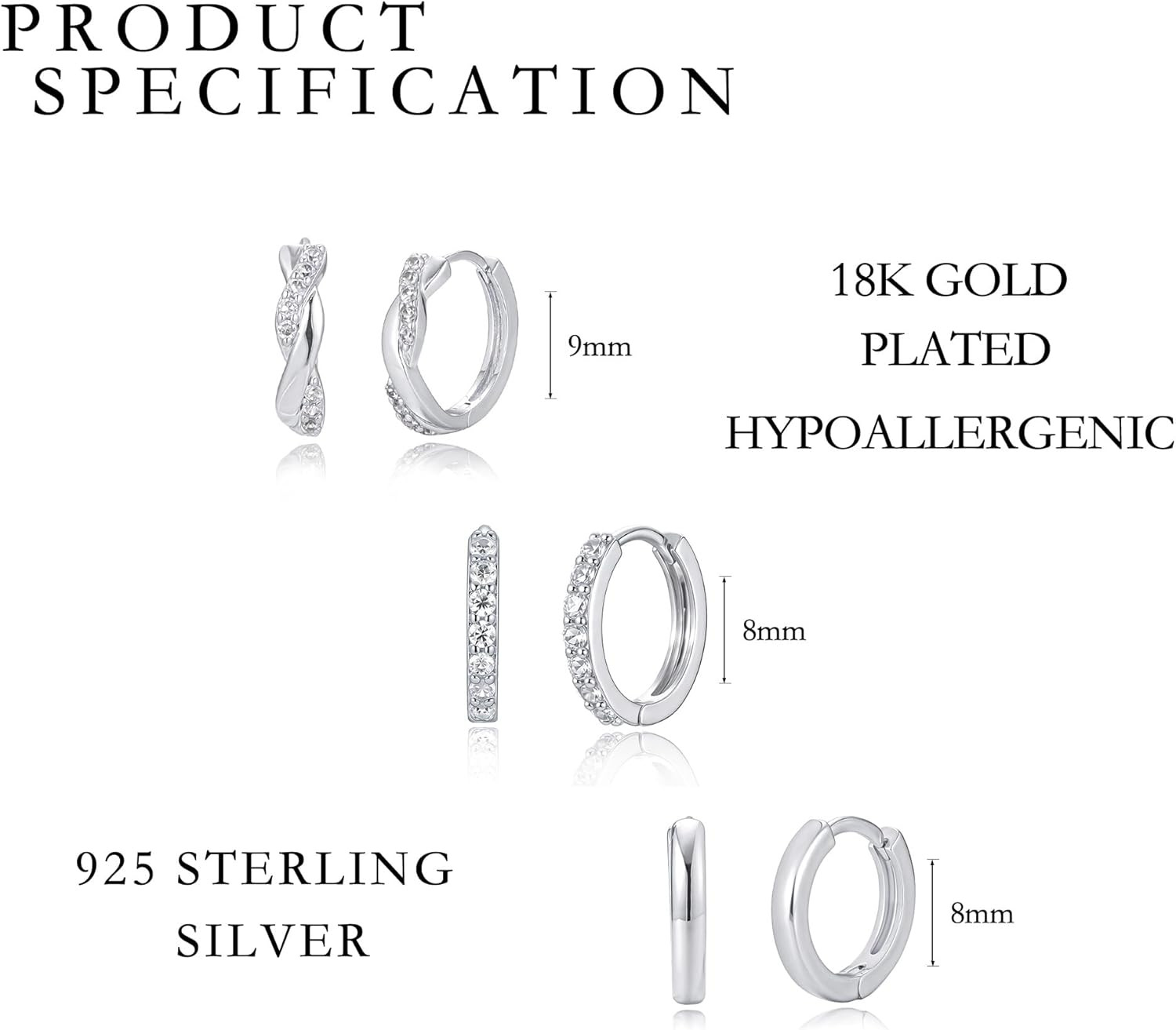 3 Pairs Silver Hoop Earrings Set: 925 Sterling Silver Dainty Stud Earrings Trend