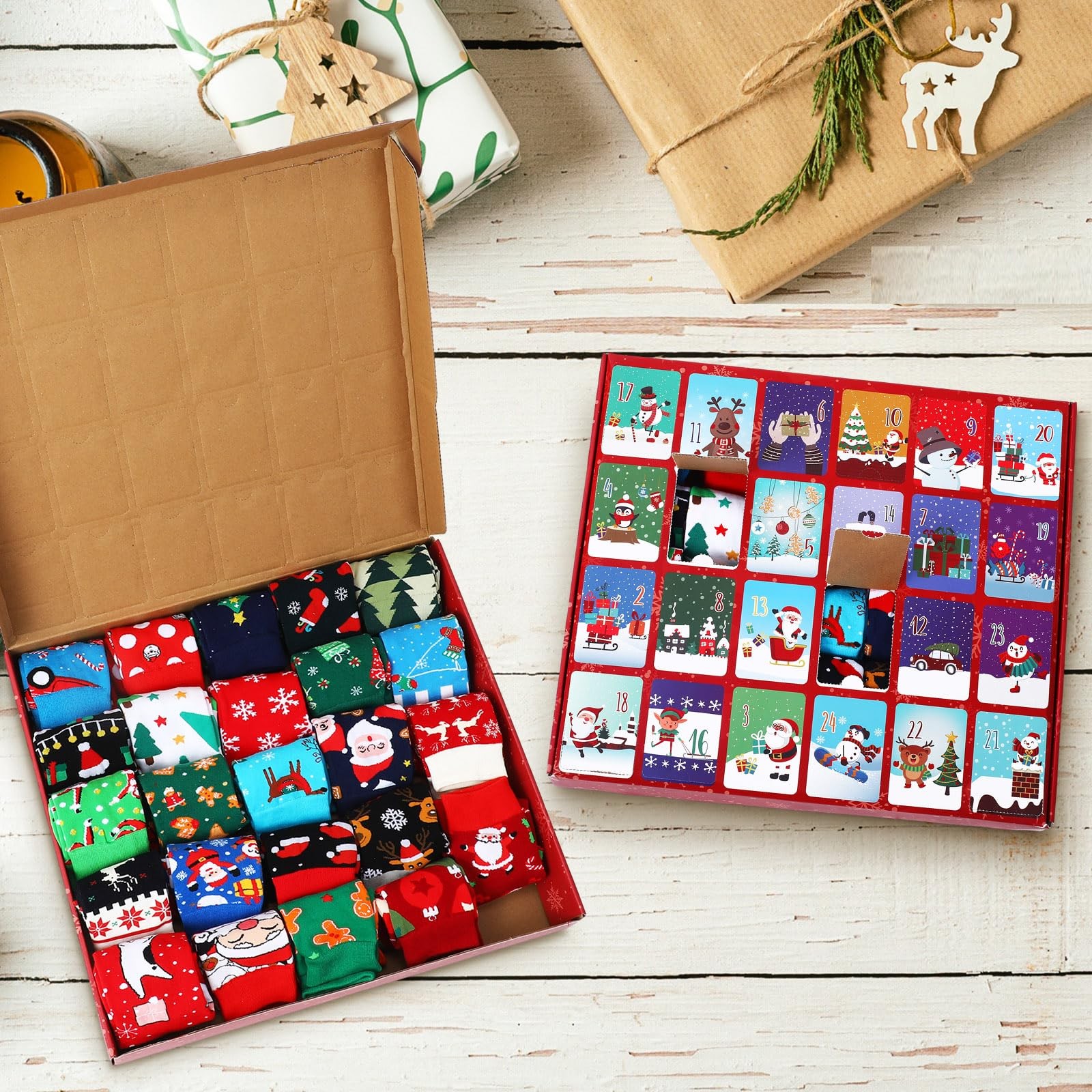 24 Pairs Christmas Sock Advent Calendar 2025 Unisex Socks 24 Days Countdown G...
