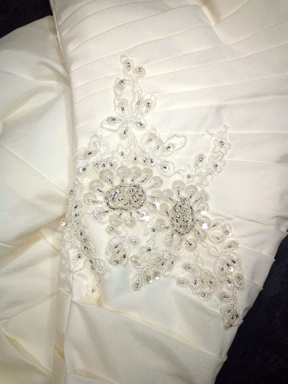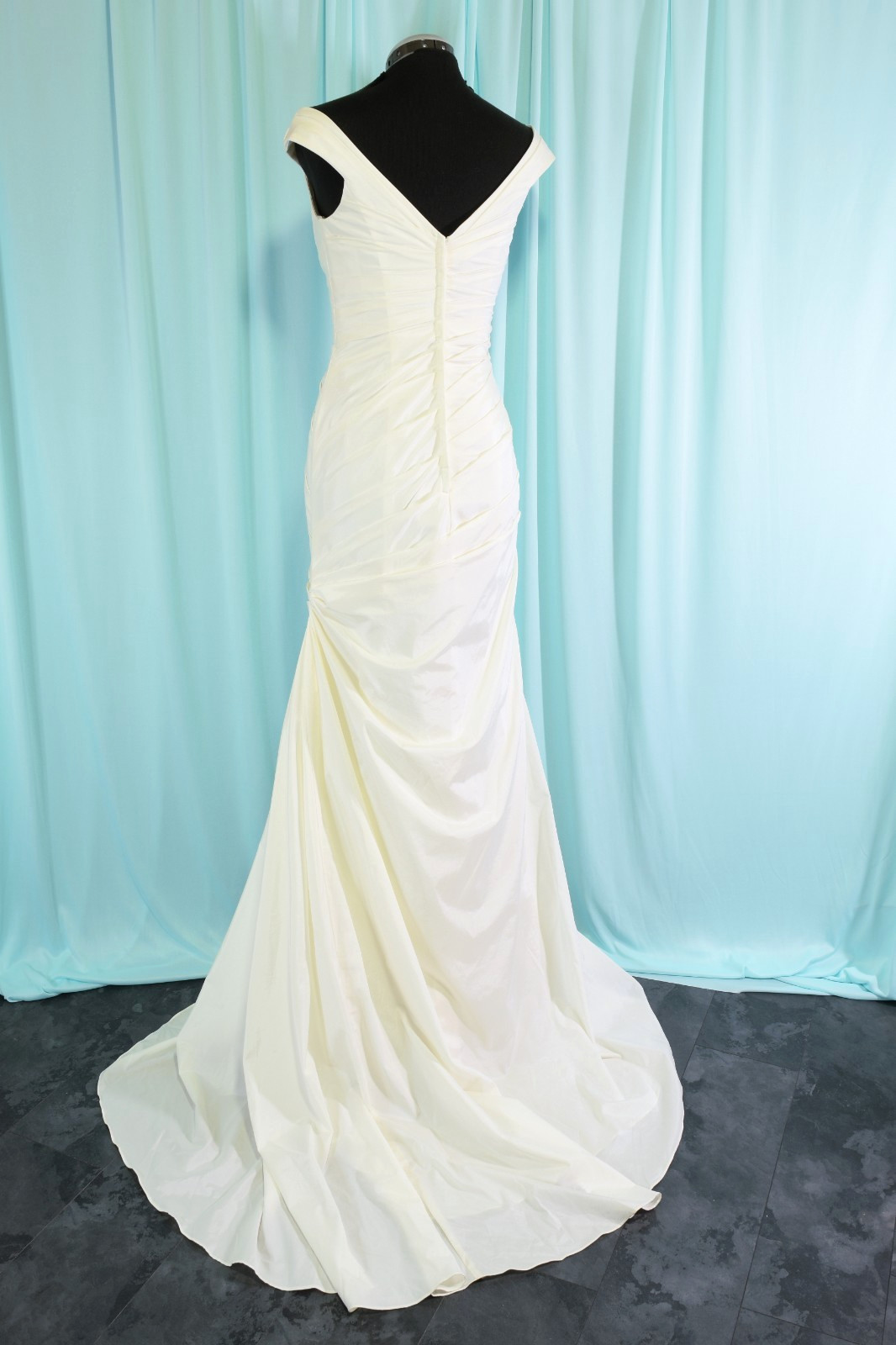 David's Bridal OP1330 Ivory Taffeta Off Shoulder Fit Flare Wedding Dress 4 NWT