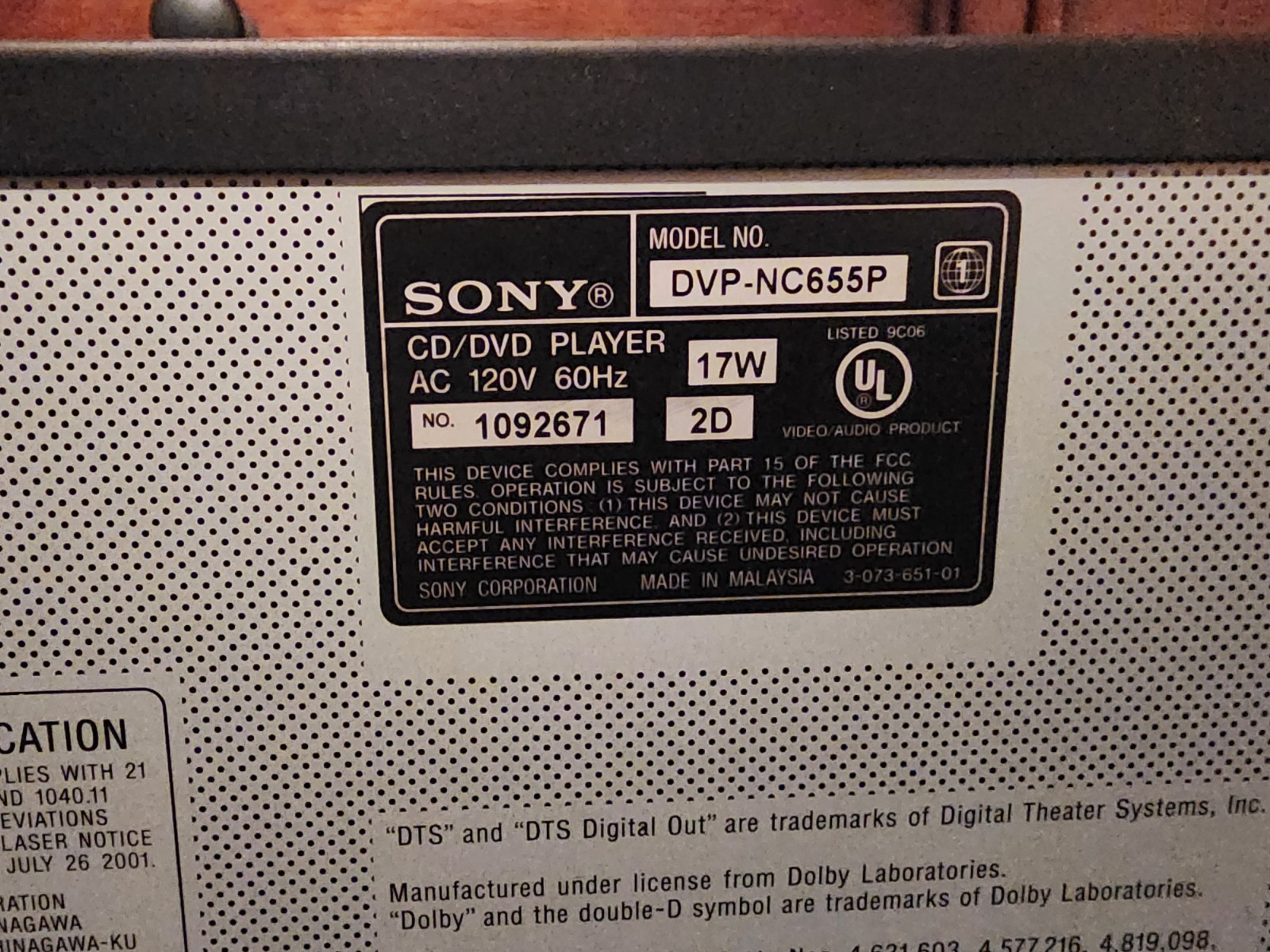 Модель: Sony DVP-NC655P