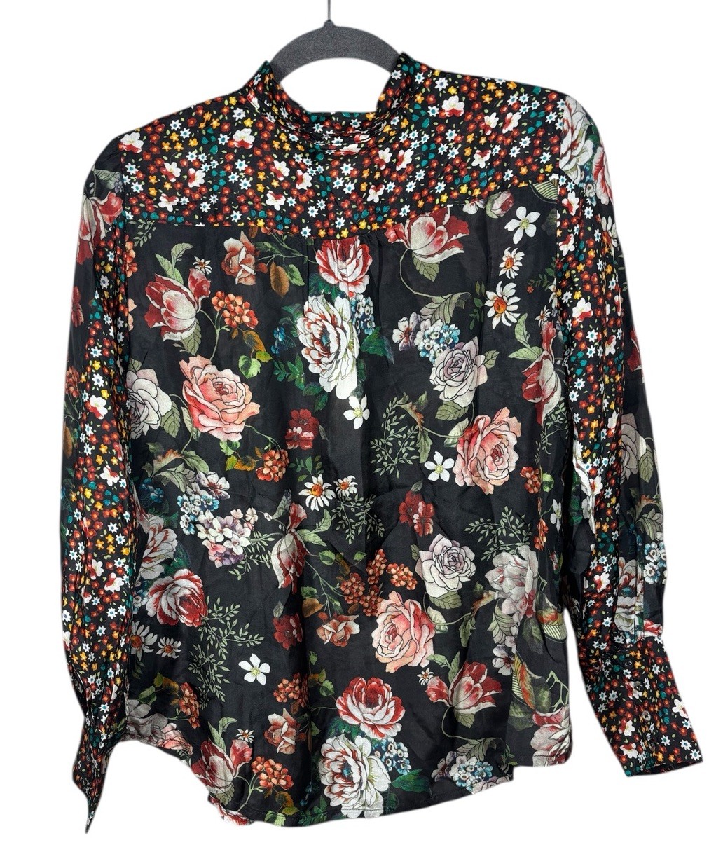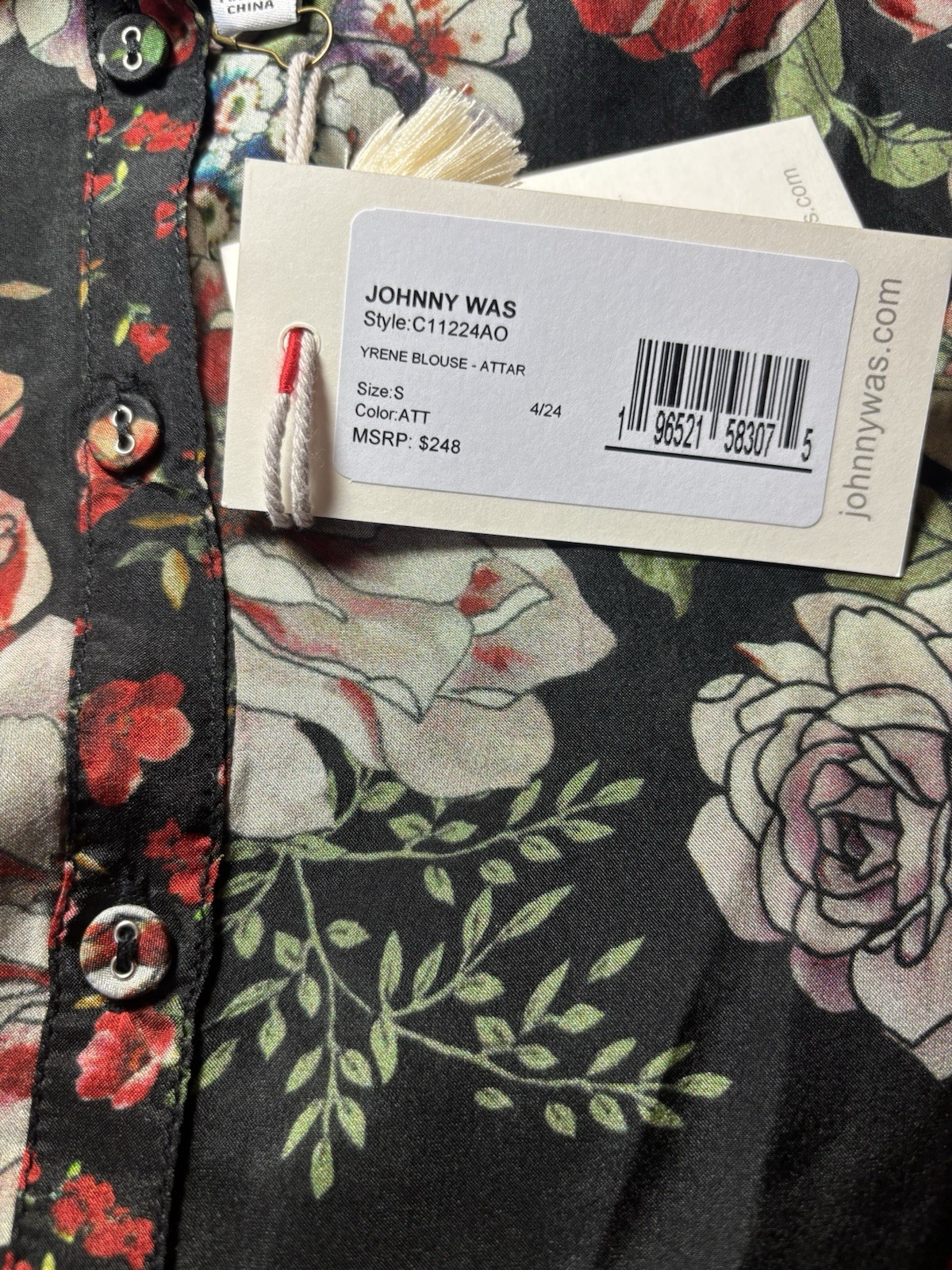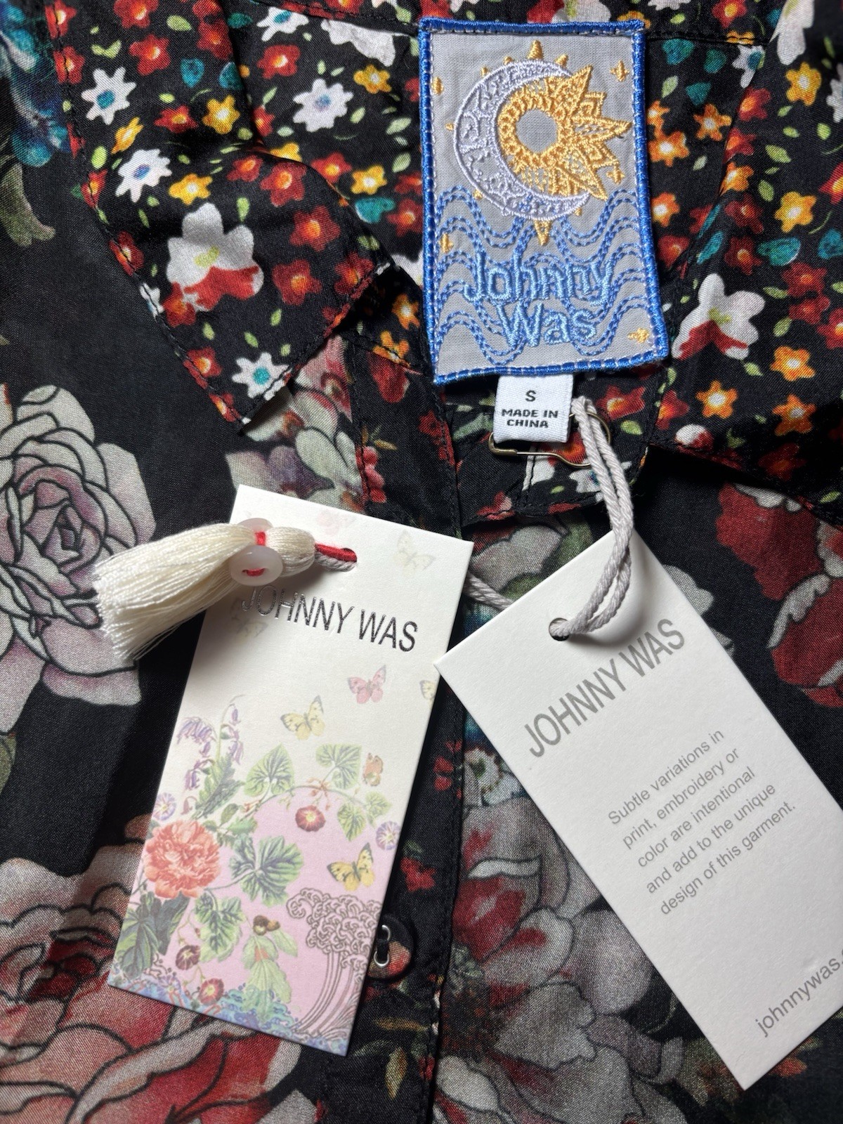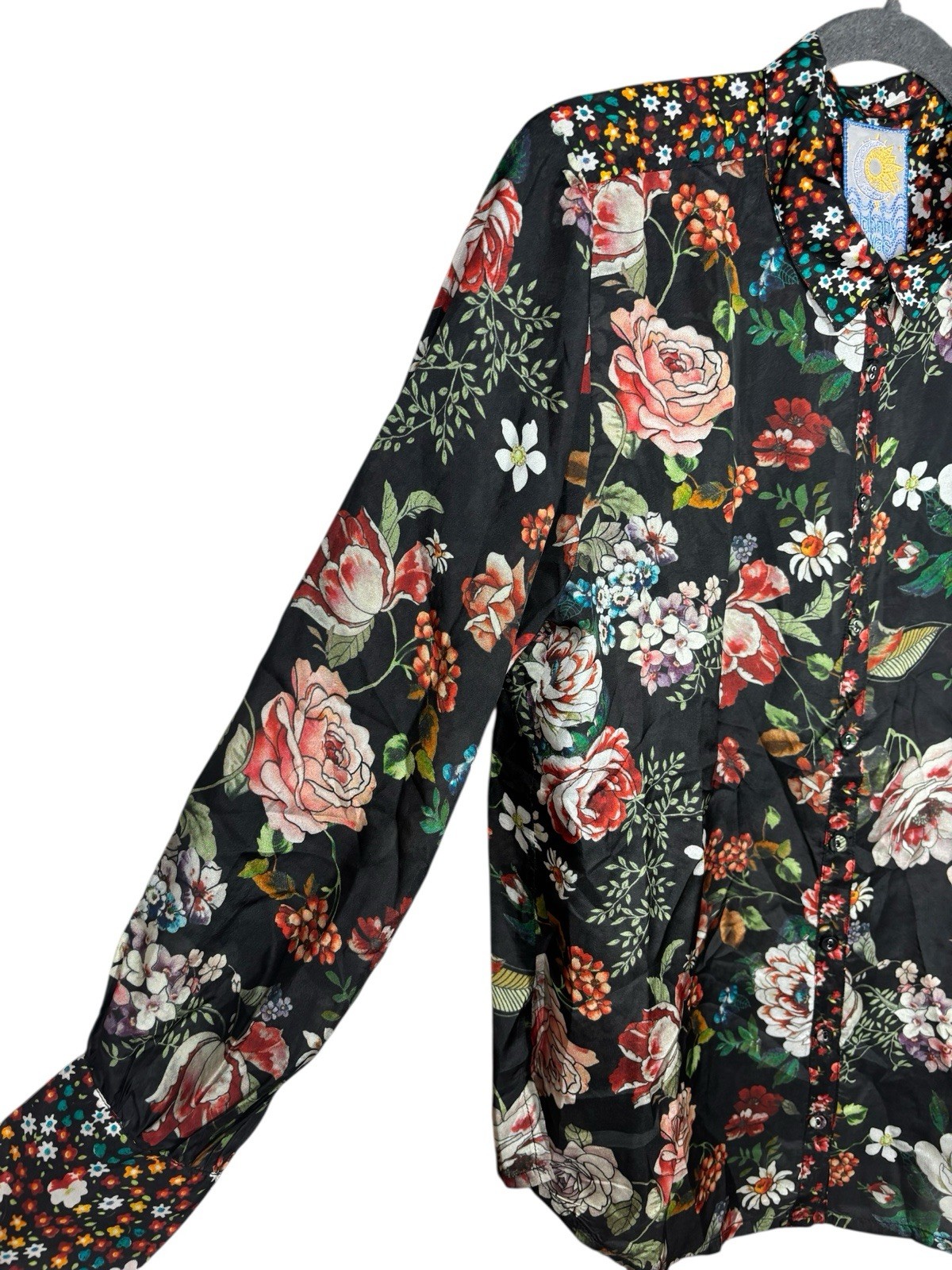 как выглядит Johnny Was S Yrene Attar Black Floral Print Silk Button Blouse Tunic Shirt 248 фото