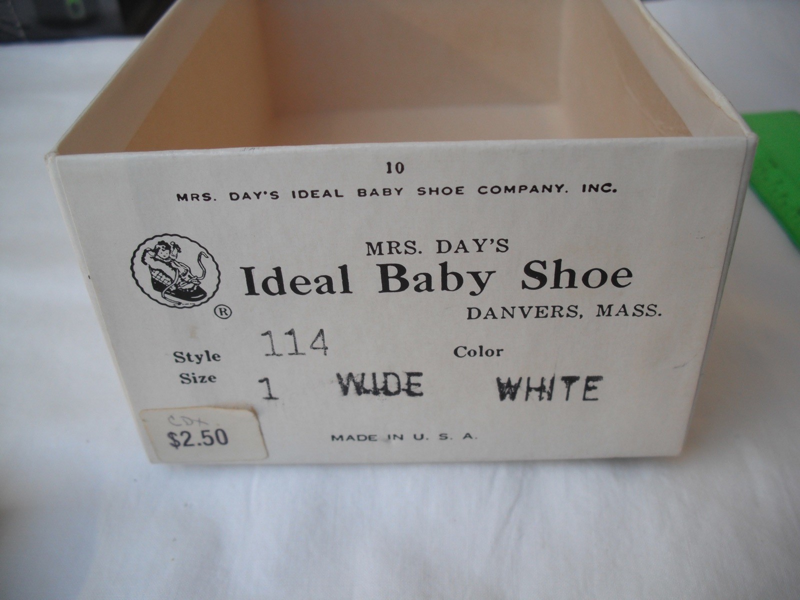 Mrs. Day's Ideal Baby Shoe, Boys, Style 114, Size 1 Wide, White, Vintage 1963