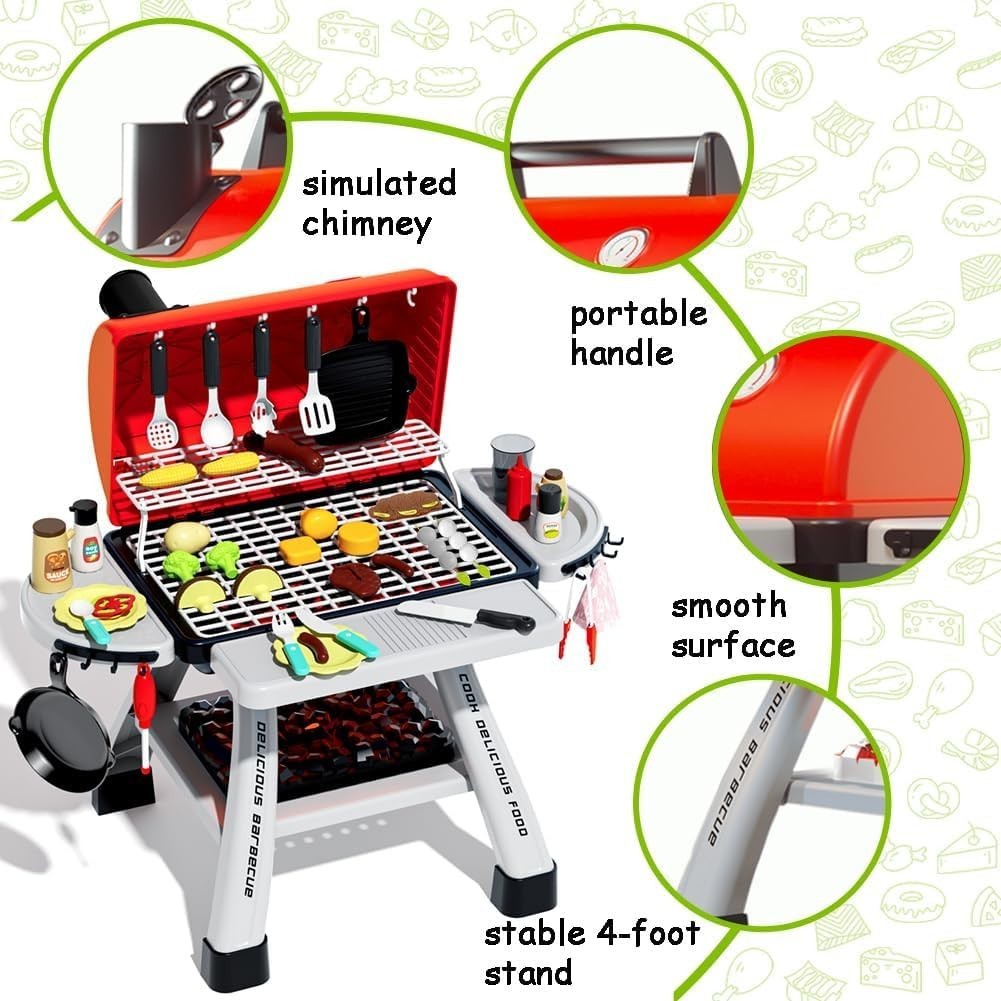 Kids BBQ Grill Playset, Play Kitchen Toys Grill with Smoke Sound Light Simula...