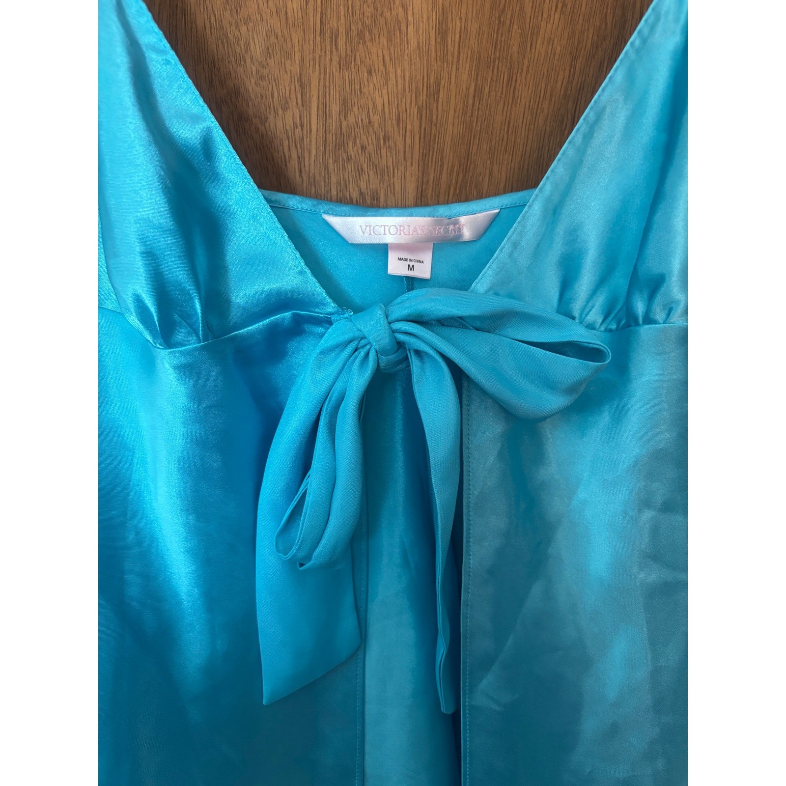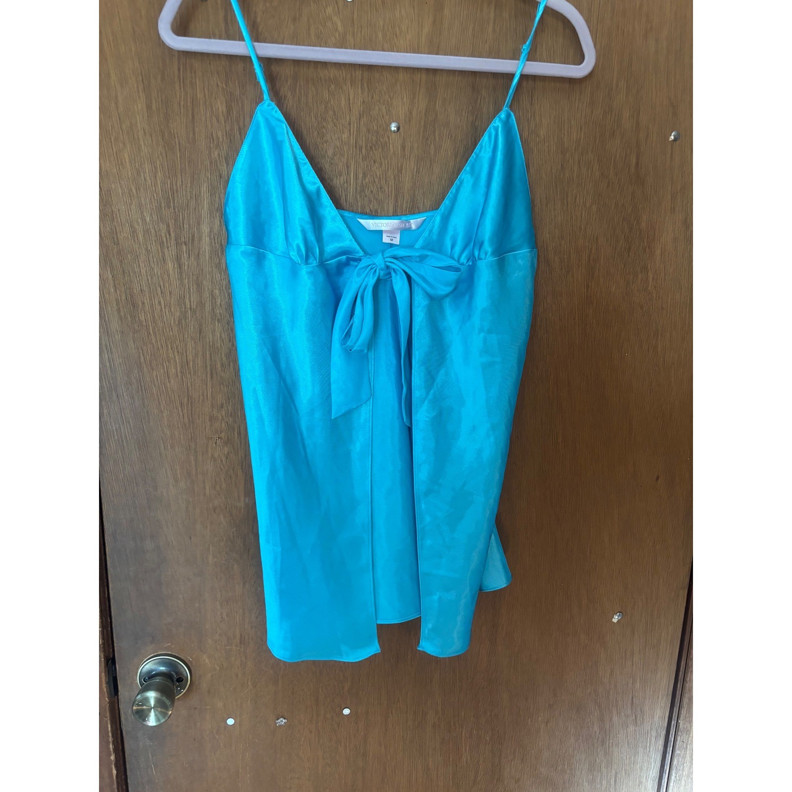 как выглядит Y2K Victorias Secret Satin Tie Front Babydoll Chemise Turquoise Blue Medium фото