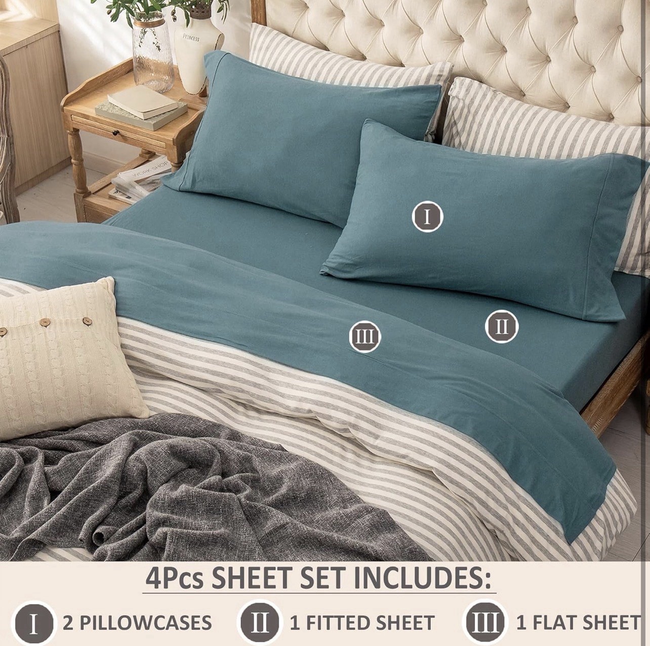 как выглядит Jersey Knit 4 Pc Bed Sheet set 100 T-shirt Cotton Soft Breathable Cal King фото
