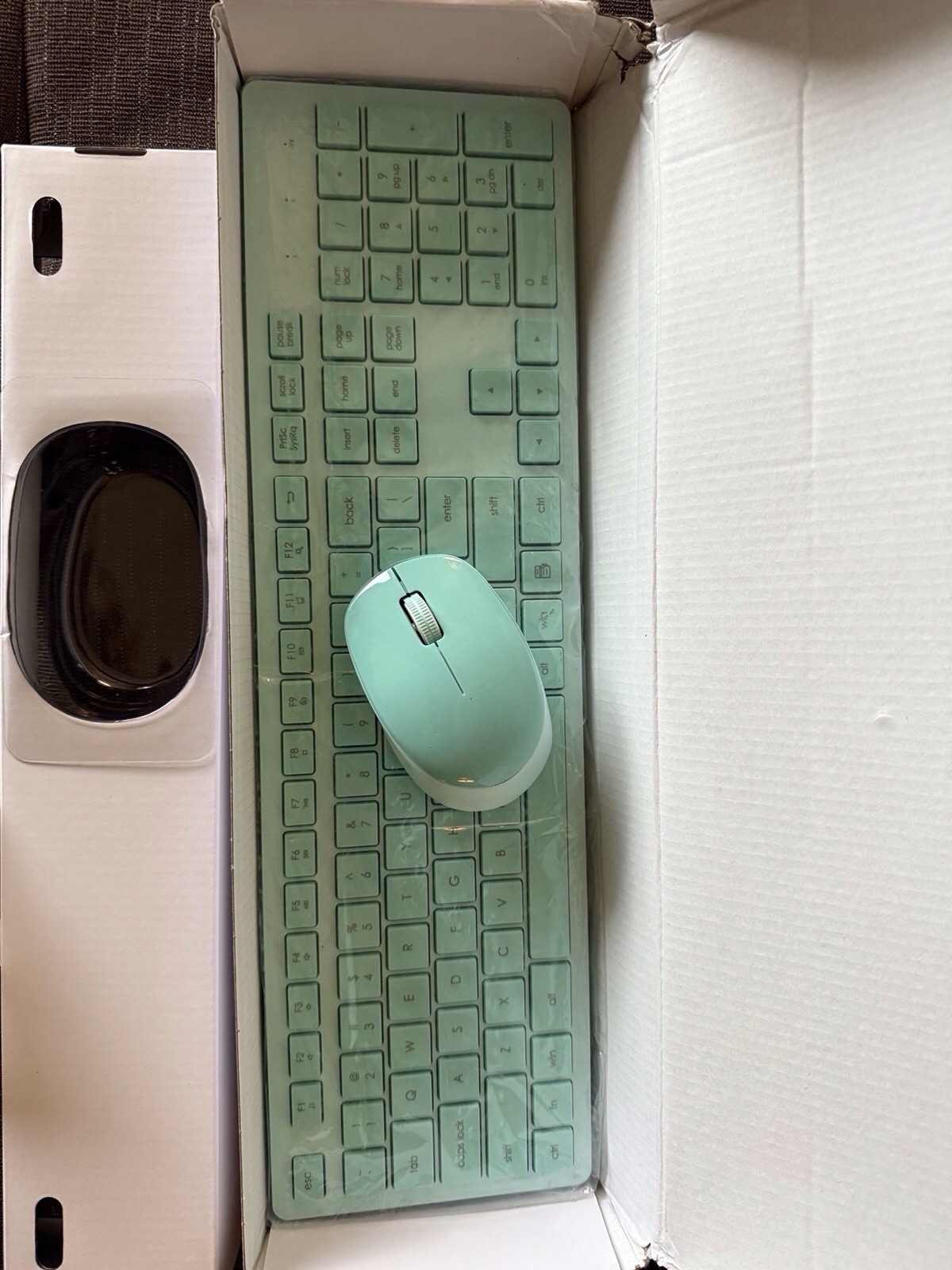 Wireless Keyboard And Mouse Set Slim Round Key Quiet Typing Mint Green Combo