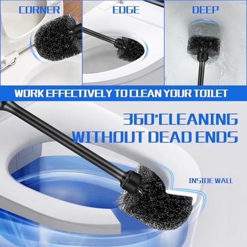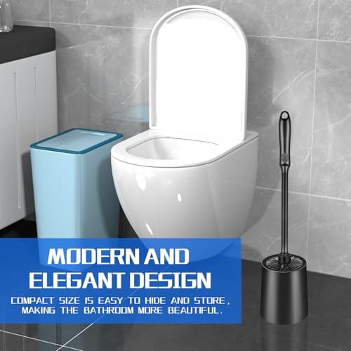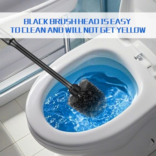 Toilet Brush and Holder 2 Pack with Long Handle - Non-Slip Grip 2 Pack Black
