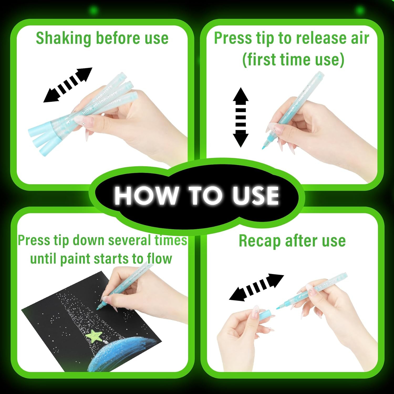 8 Colors Glow in the Dark Markers 0.7Mm round Tip Neon Fluorescent Paint Pens