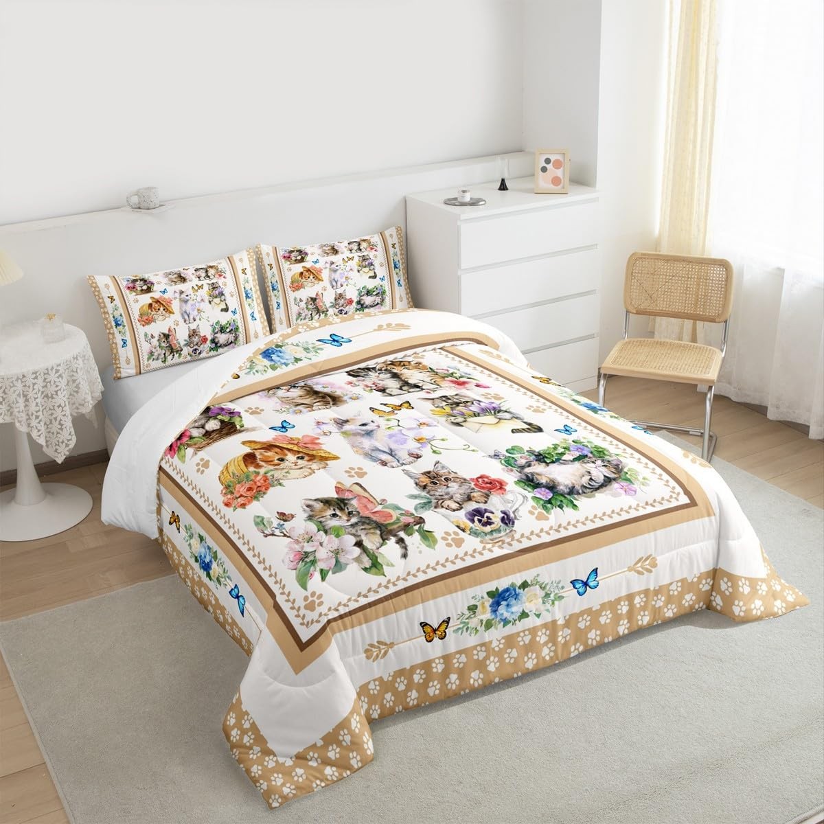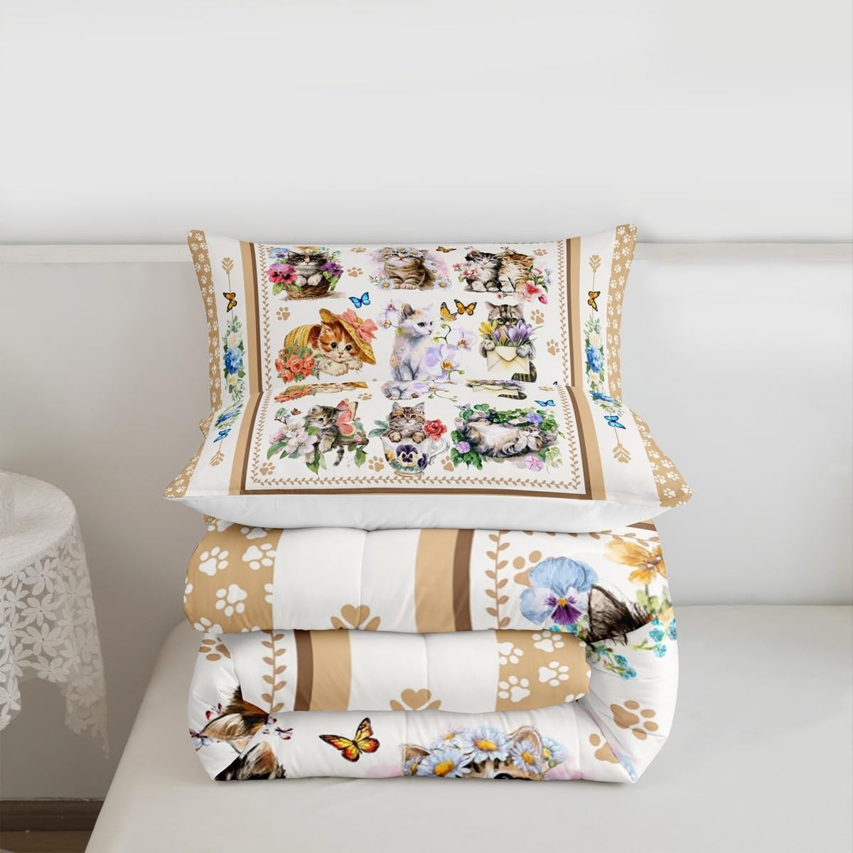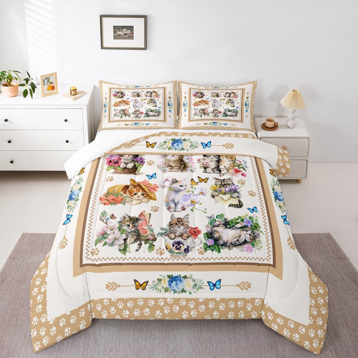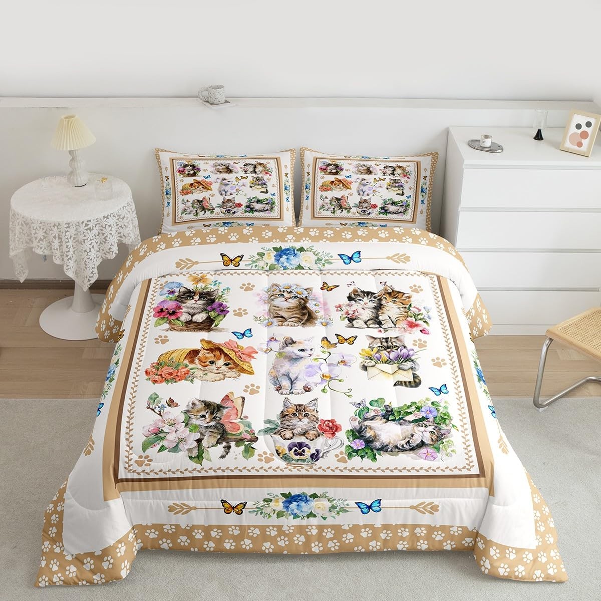 Cute Cats Kids Comforter Set Full Size,Cartoon Animal Paws Print Toddler Bedd...
