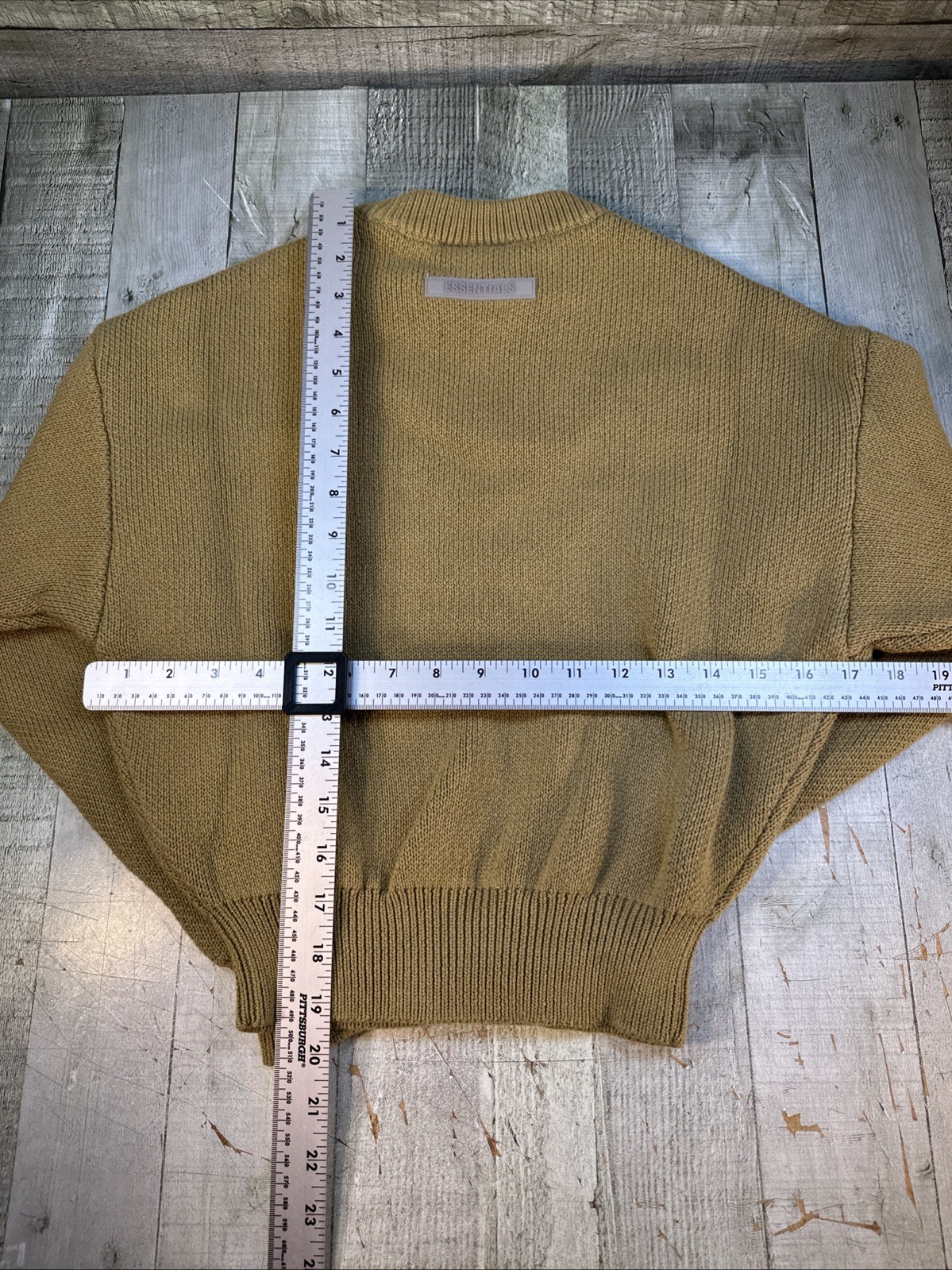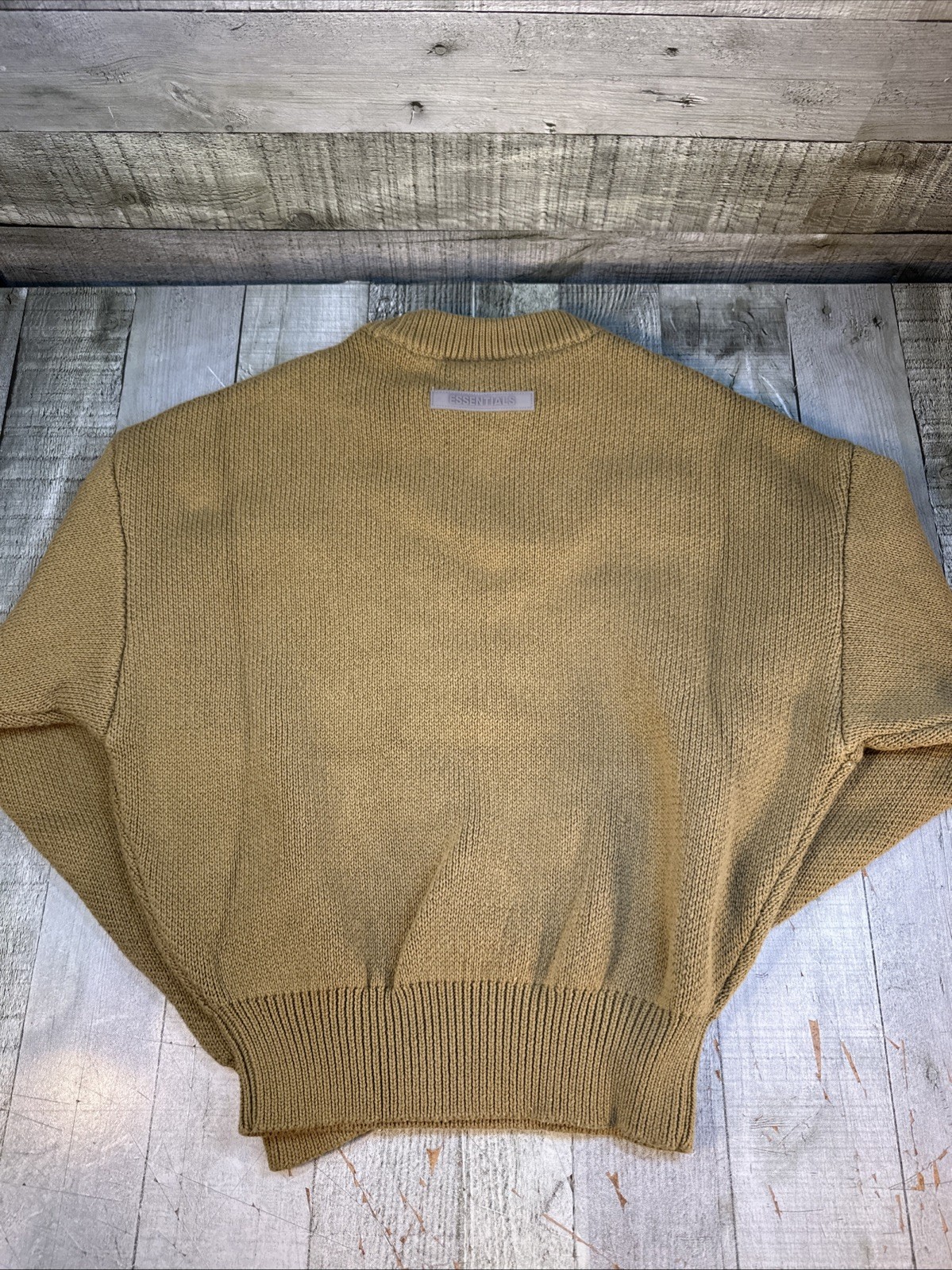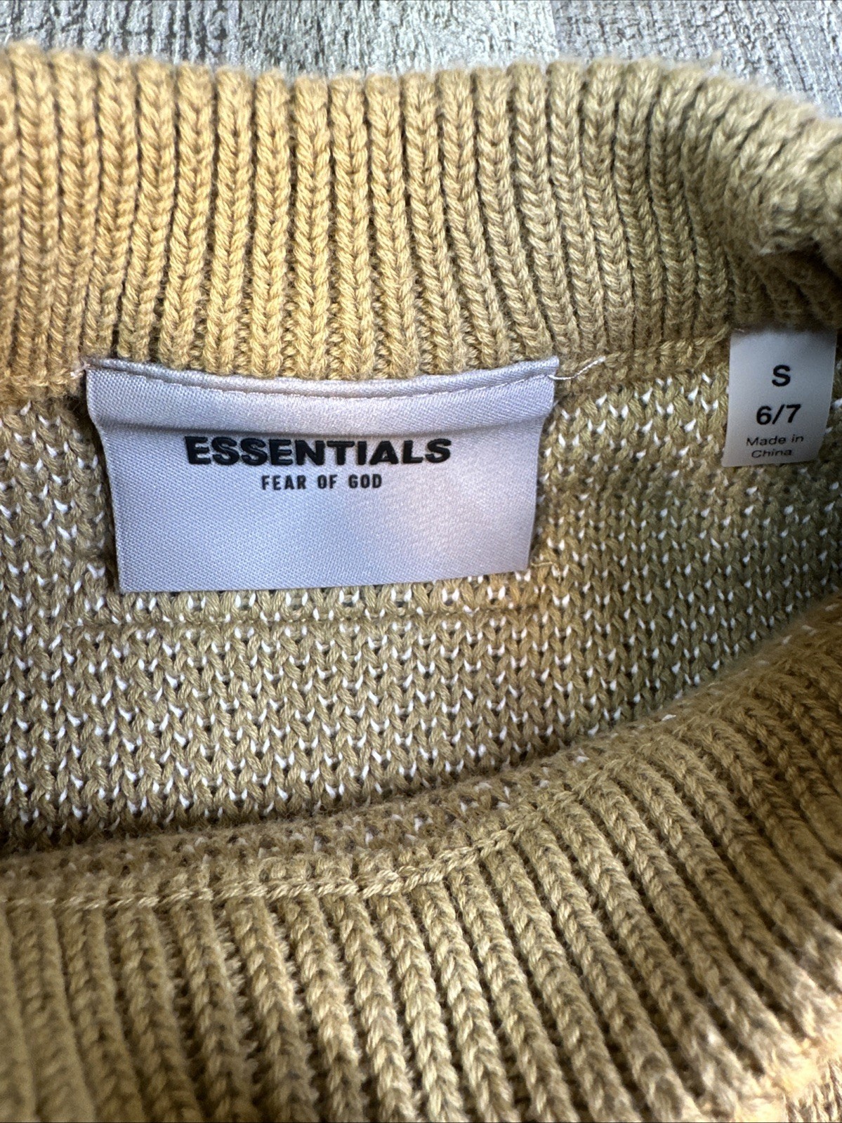 как выглядит Essentials Fear of God Youth Small 6-7 Tan Knit Logo Crewneck Sweater фото