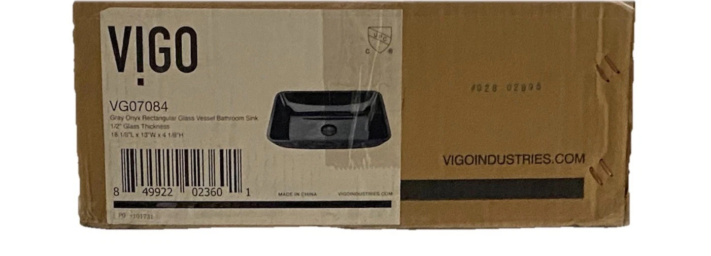 как выглядит VIGO Donatello 18"L x 13"W x 4"H Glass Rectangular Vessel Sink Gray Onyx VG07084 фото