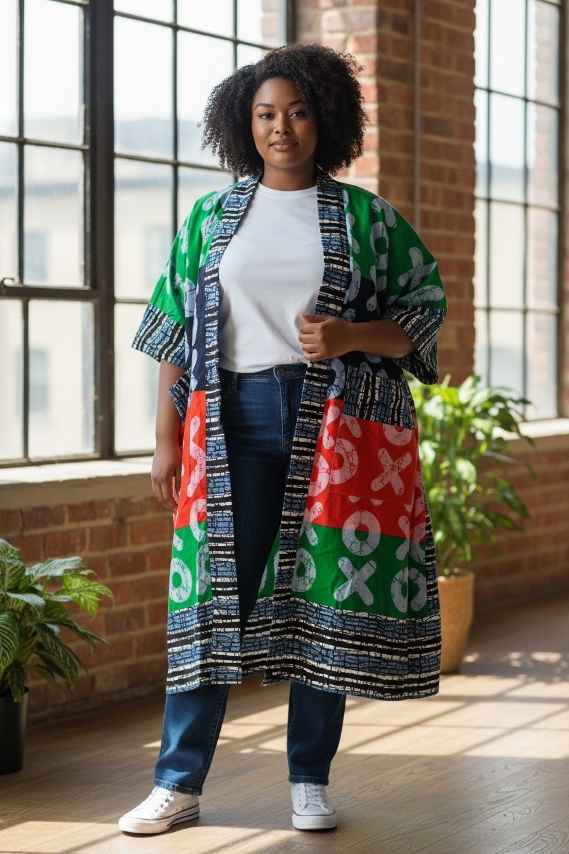 African Original Ankara Hand Print Fabric Cotton Colorful Handmade Coat Freestyl