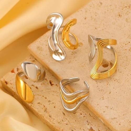 Chunky Gold Rings for Women Non Tarnish 18K Plated Real Gold Gold and Silver5