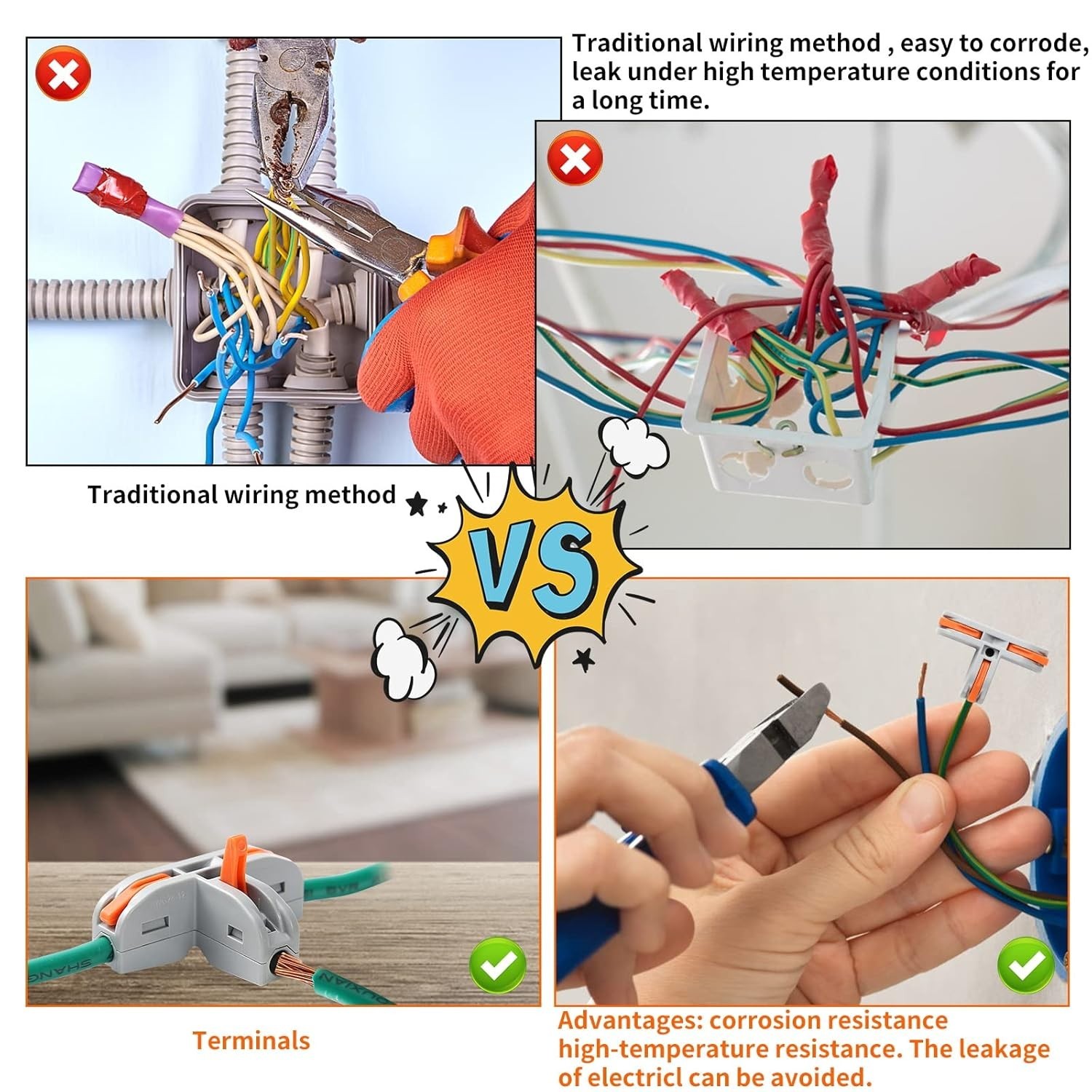 25Pcs Compact Wire Conductor Electrical Connector, T-Shape Lever Nut, AWG 28-12
