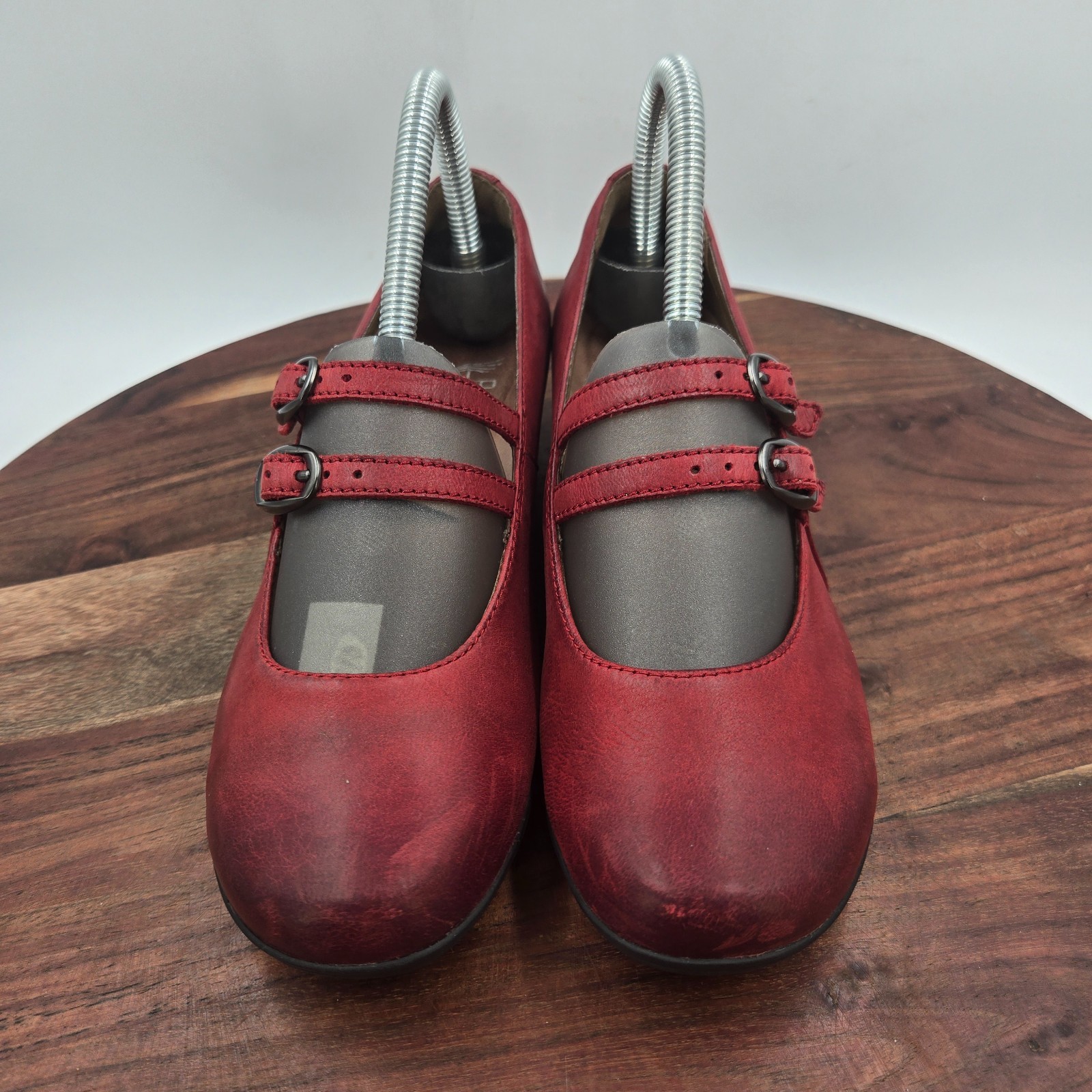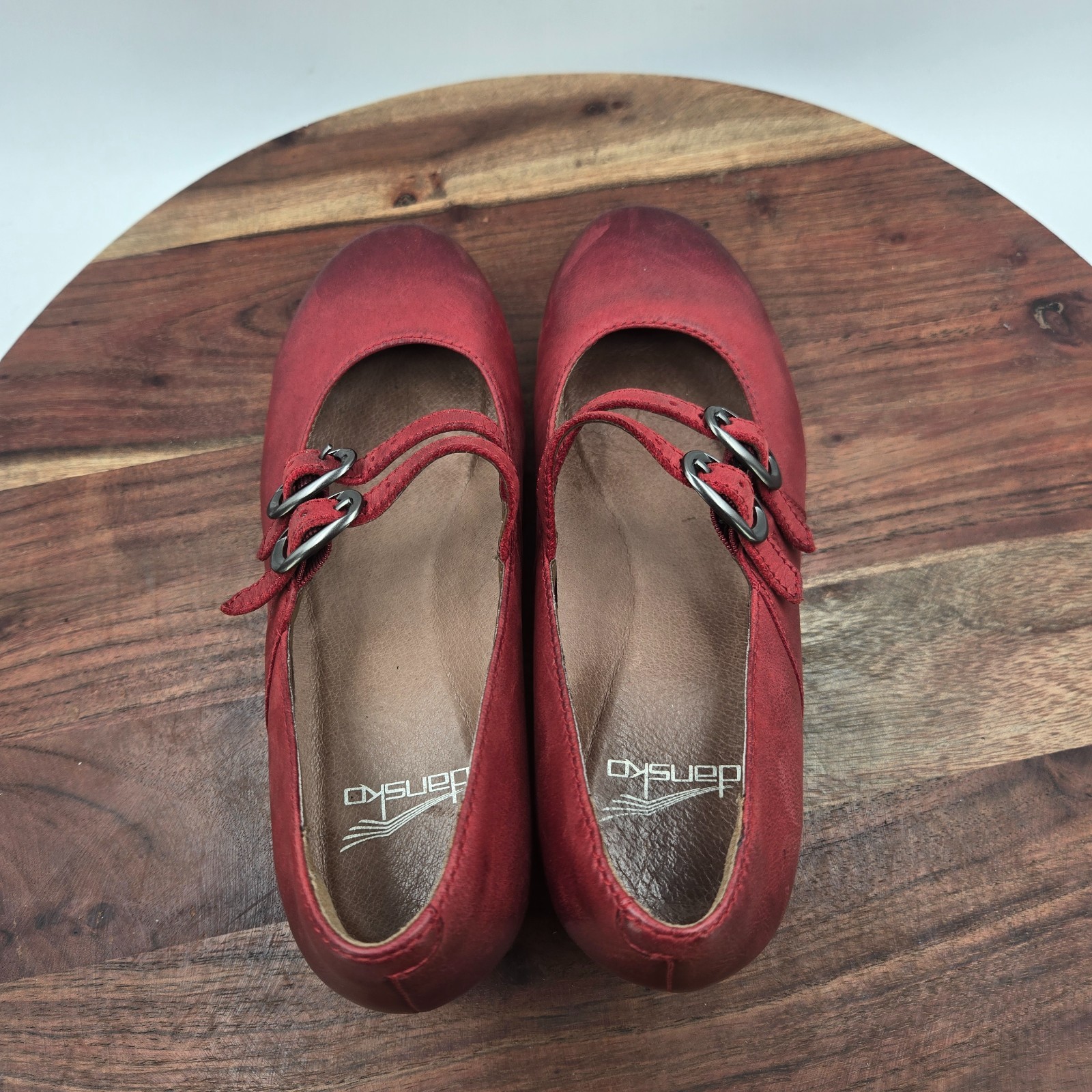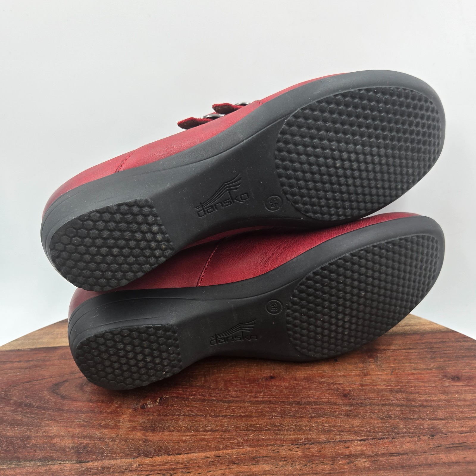 Dansko Fynn Shoes Women's 36 / 5.5 Red Leather Comfort Mary Jane Wedge Career