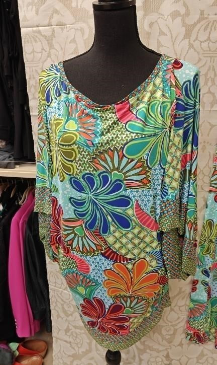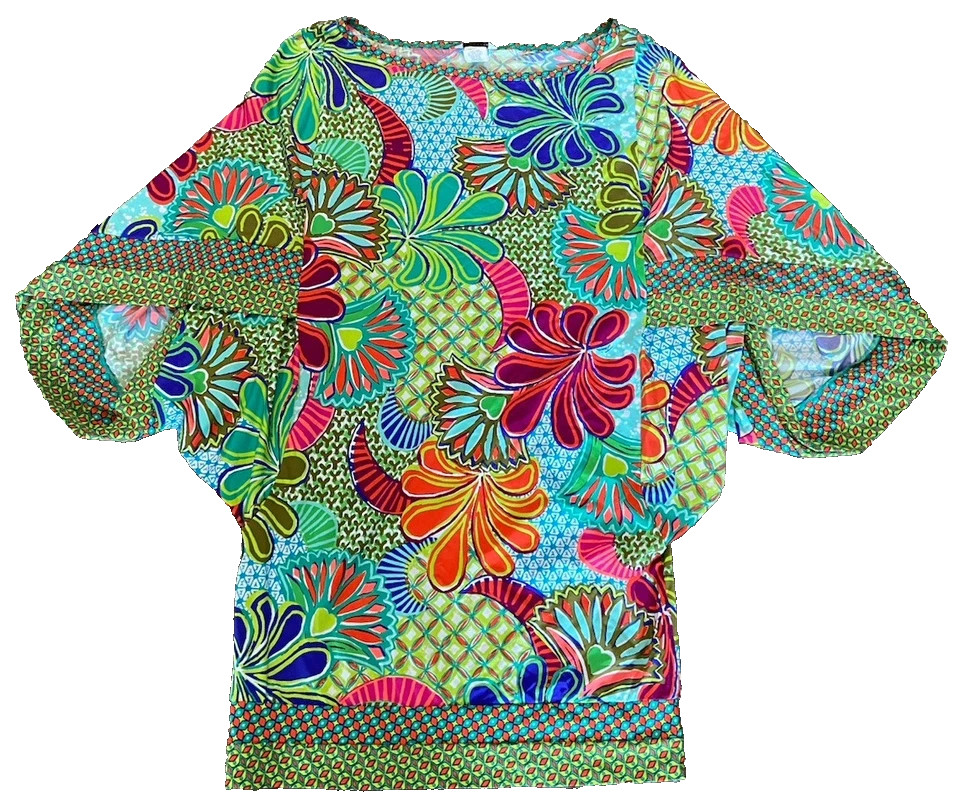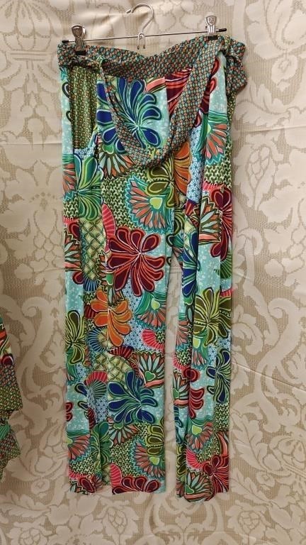 Trina Turk Zanzibar Set of 3, Swim Coverup, Pants, Swimsuit Bright Flowers Med