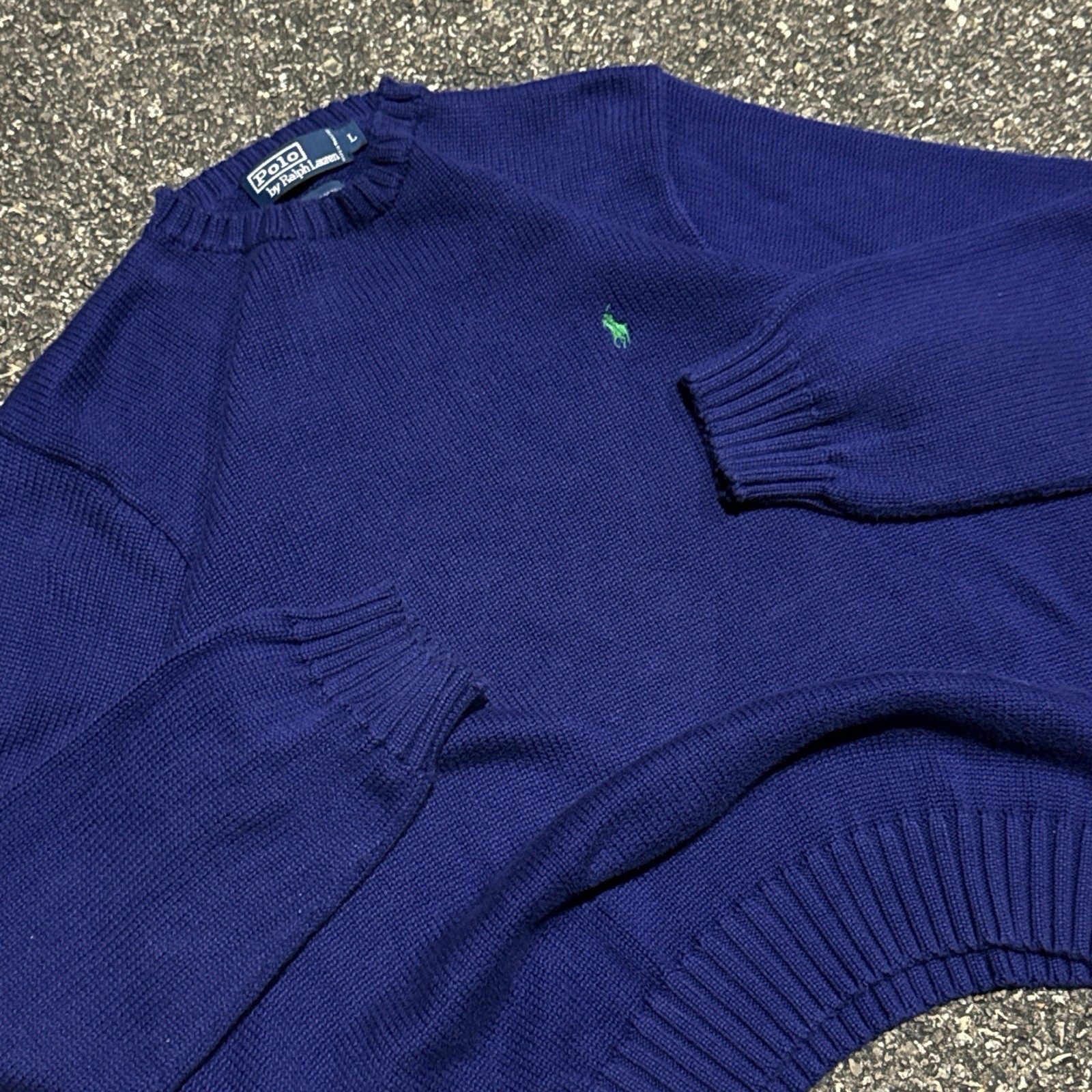 Vintage Polo Ralph Lauren Blue knit sweater green pony size Large