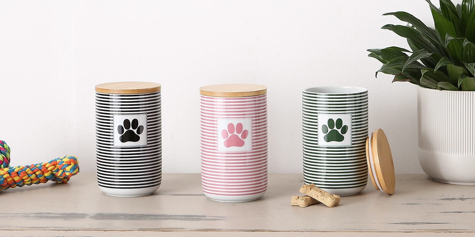 Bone Dry Paw Patch Ceramic Pet Collection, Treat Canister, 4x6.5, Black,Tre...