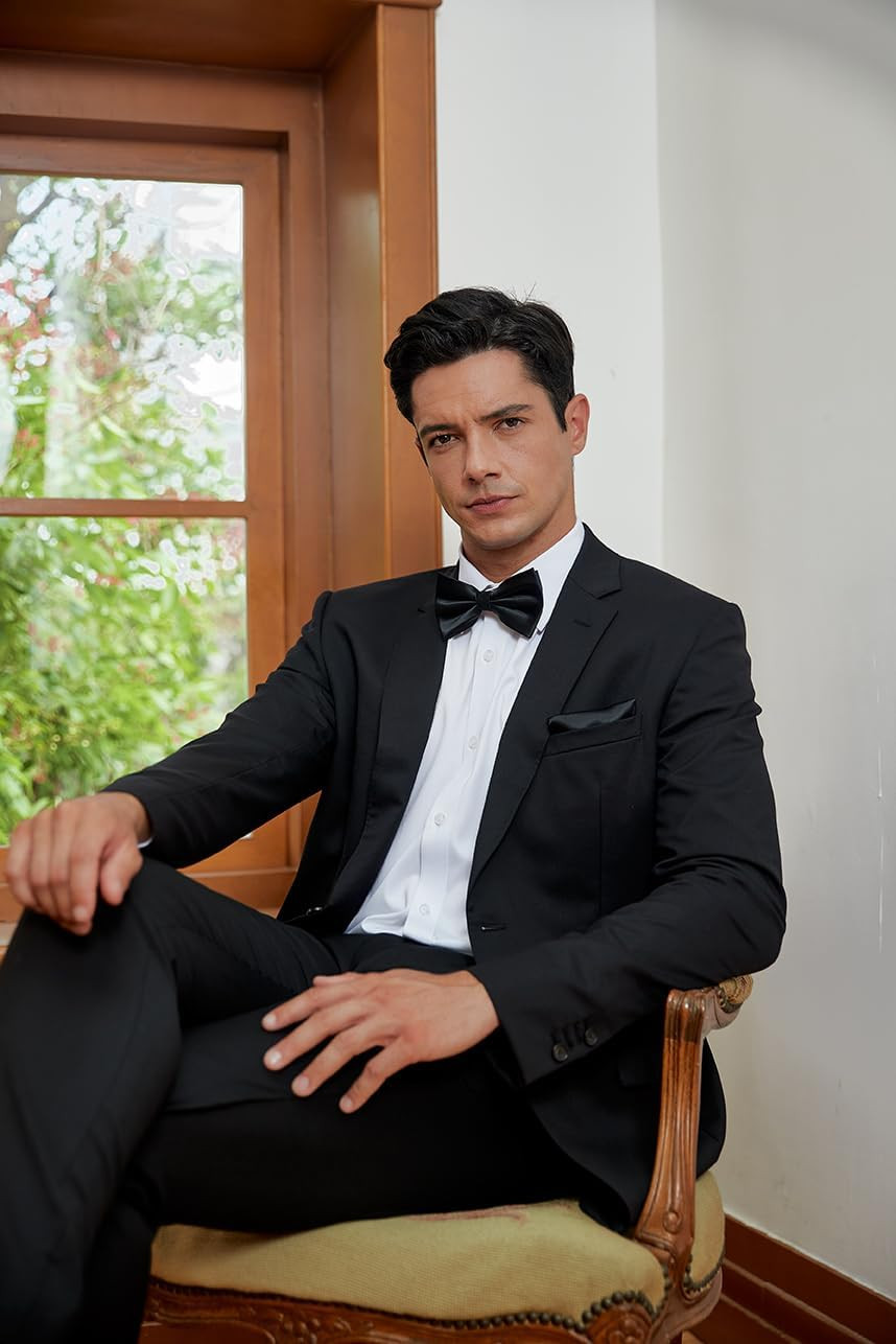 Bow Ties for Men Solid Color Pre-Tie Bow Tie and Pocket Square Set Classic Forma