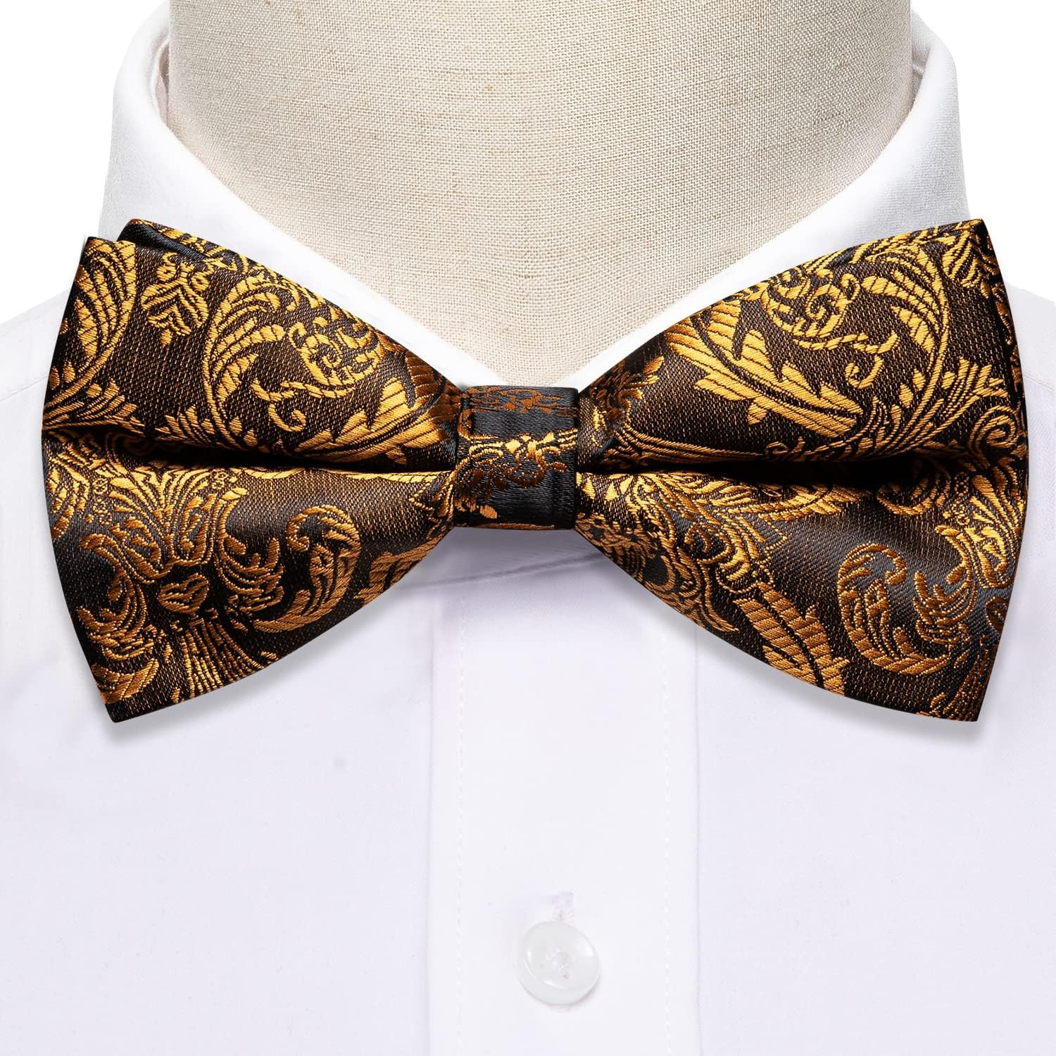 Paisley Striped Bow Tie for Men Silk Pre-Tied Bowtie Pocket Square Cufflinks Set