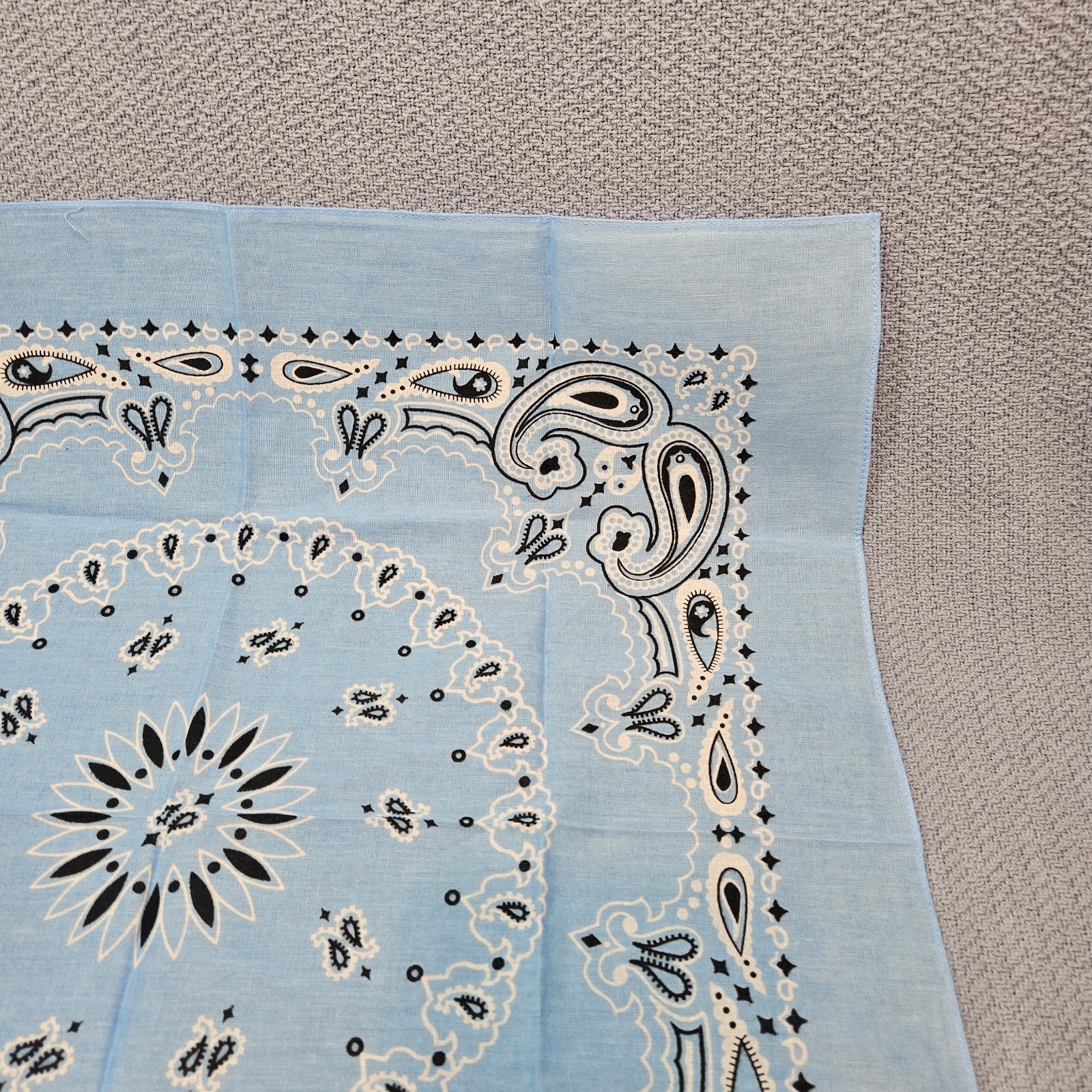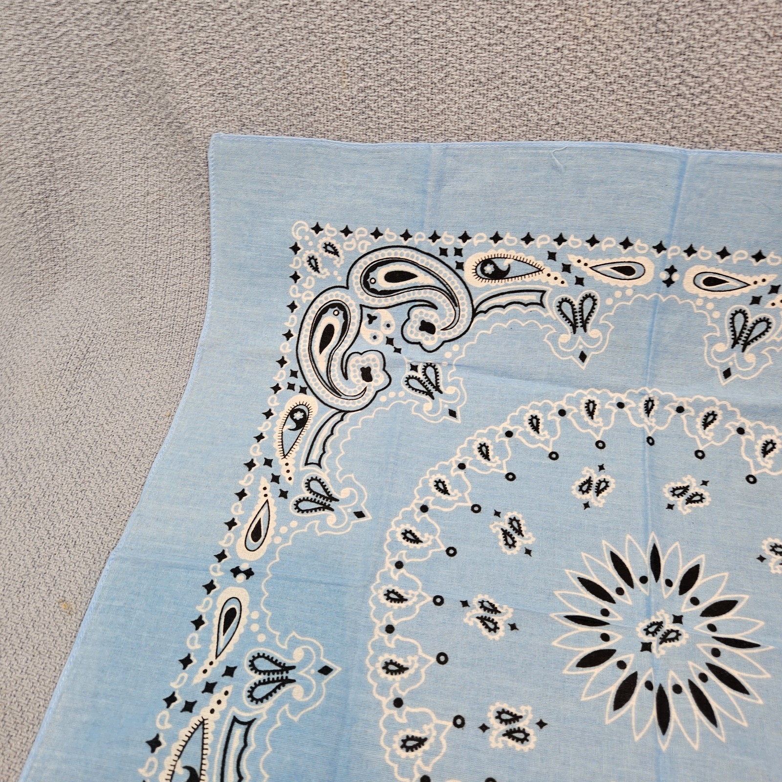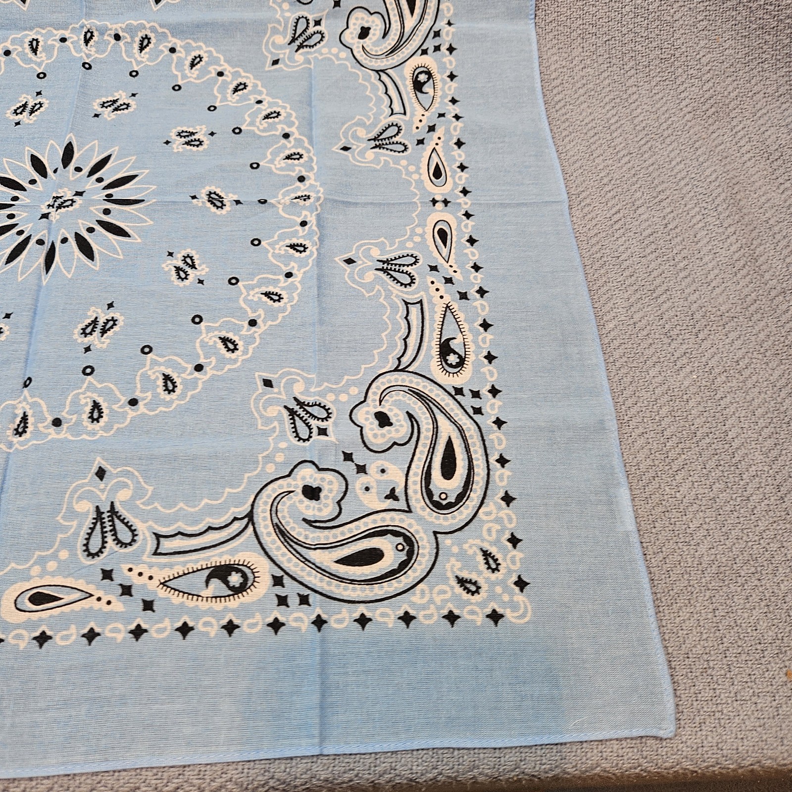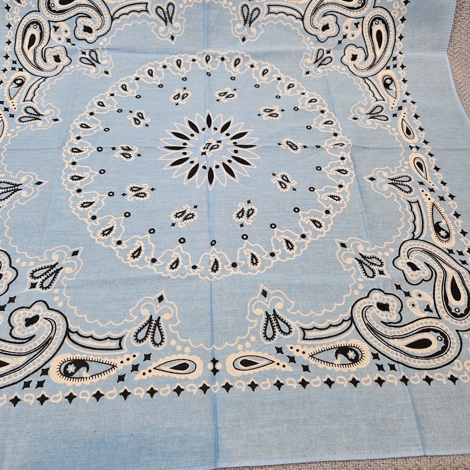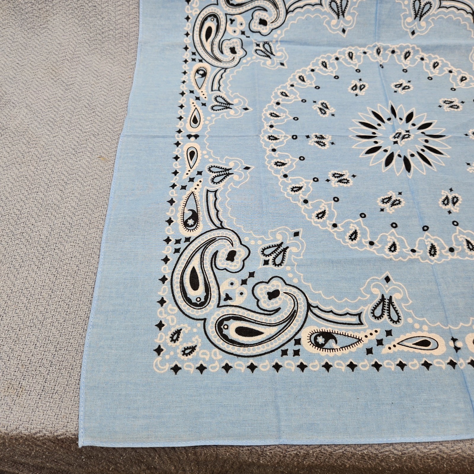 LIGHT BLUE PAISLEY PRINT BANDANA 100 COTTON SQUARE HANDKERCHIEF 21x21