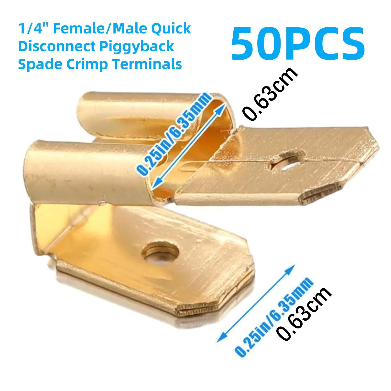50PCS Dual Male to Single Female Brass Piggyback Spade Connectors Adapter