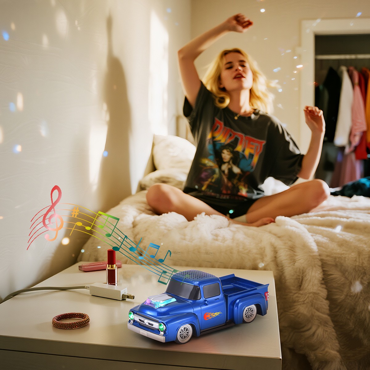 Bluetooth LED Classic Music Truck Speaker Loud Sound MP3 USB AUX FM TF LED Light