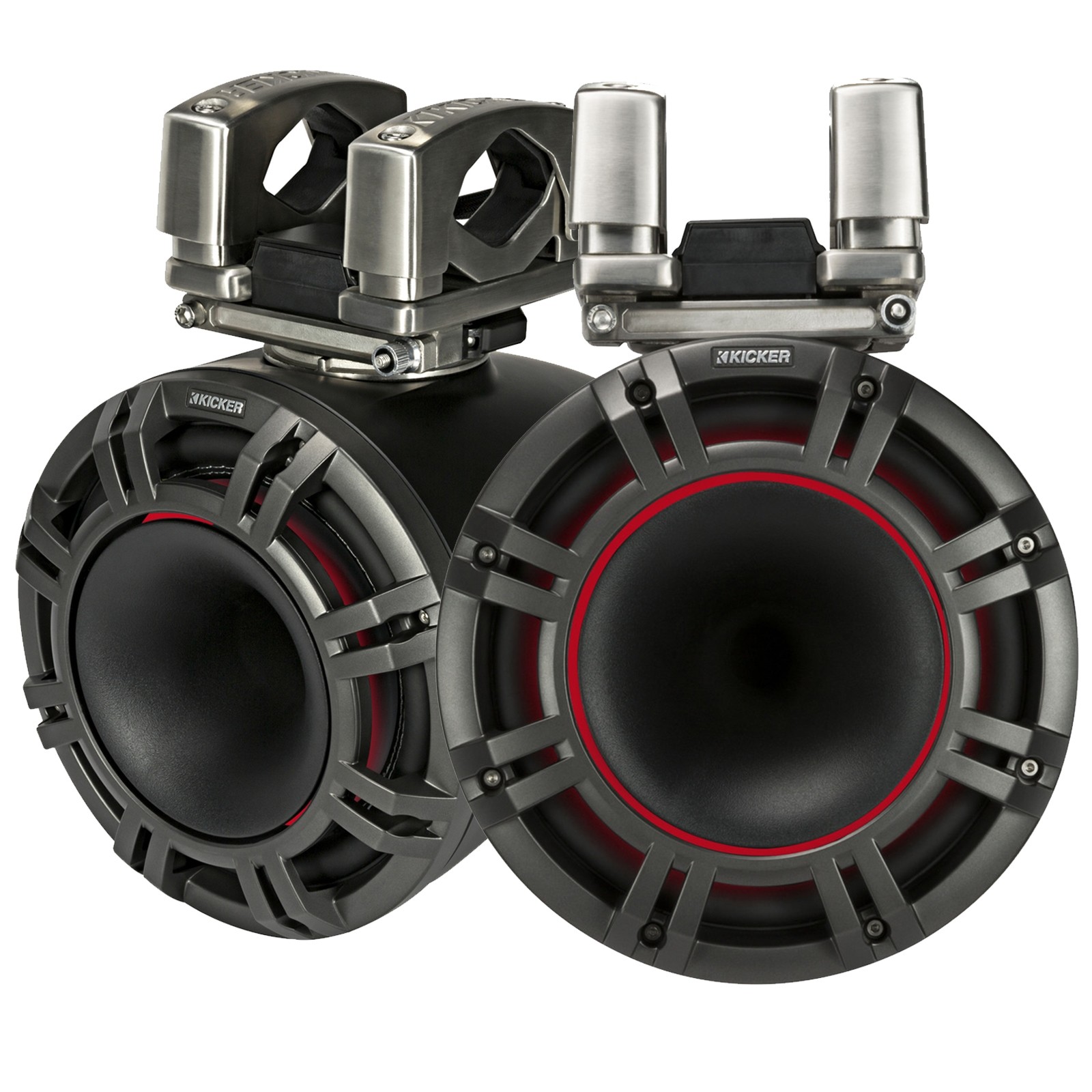 Pair KICKER KMTC9 HLCD 9 600w Horn-Loaded LED Wakeboard Tower Speakers 44KMTC94