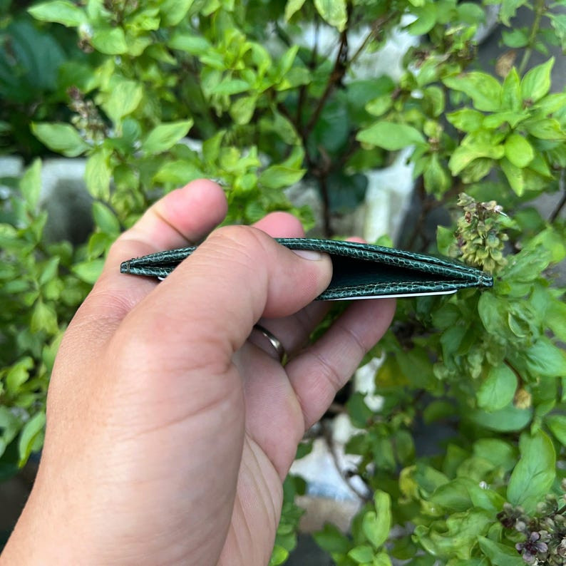 как выглядит Real Green Ostrich Leg Leather Cardholder Minimalist Credit Card Holder 4 Slot фото